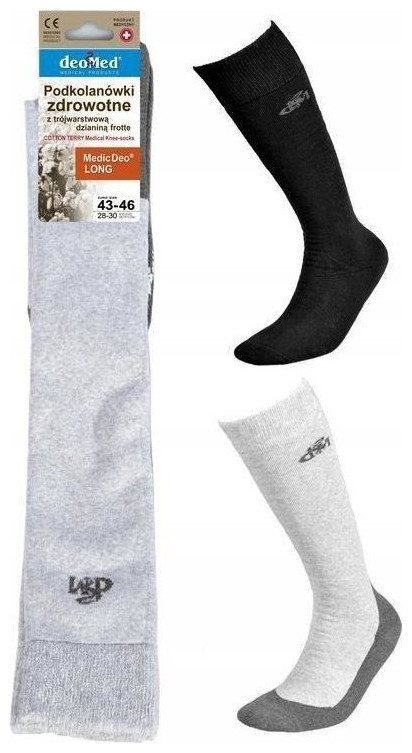 Ελαστικές κάλτσες υγείας της JJW, μοντέλο MEDICDEO LONG. Κάλτσες υγείας γενικής χρήσης από πανί. Ο πρωτοποριακός σχεδιασμός του επάνω μέρους και μια μικρή προσθήκη σύγχρονων ινών Lycra σε όλη τη δομή εξασφαλίζουν τέλεια πρόσφυση στα πόδια χωρίς πίεση και μέγιστη ευελιξία - αποτρέπει την αρτηριακή πίεση και εξασφαλίζει άνεση ακόμα και για πρησμένα πόδια. Το μαλακό πανί τριών στρώσεων προστατεύει τα ευαίσθητα μέρη των ποδιών από γδαρσίματα και τραυματισμούς. Οι κάλτσες έχουν ανθεκτικό αντιβακτηριακό και αντιμυκητιασικό φινίρισμα (Swiss Sanitized license), το οποίο αναστέλλει την ανάπτυξη μικροβίων και αποτρέπει τις δυσάρεστες οσμές κατά τη χρήση. Μια ελαστική ταινία στο μέσο του ποδιού εμποδίζει την κάλτσα να γλιστρήσει από το πόδι. Είναι ιδανικά για σωματική δραστηριότητα. Οι κάλτσες είναι κατασκευασμένες από καθαρό βαμβάκι - το υψηλότερης ποιότητας φυσικό νήμα. Σύνθεση: 84% βαμβάκι, 13% πολυαμίδιο, 3% Lycra, Απολυμασμένο φινίρισμα. Οι κάλτσες είναι ολοκαίνουργιες. Διαθέσιμο χρώμα: μαύρο. Μέγεθος: 35-37.