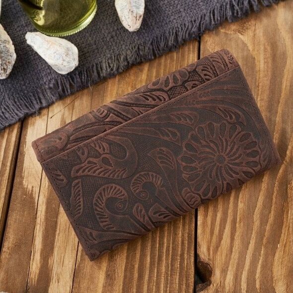 Portfel damski skórzany vintage w kwiaty brązowy duży Paolo Peruzzi T-108-HBR