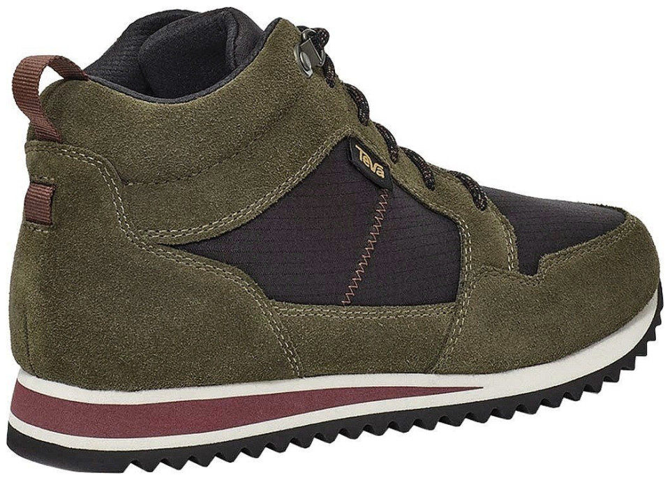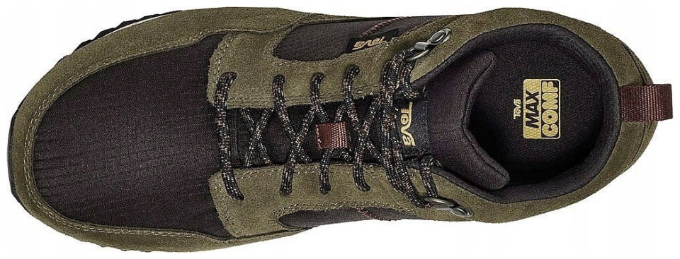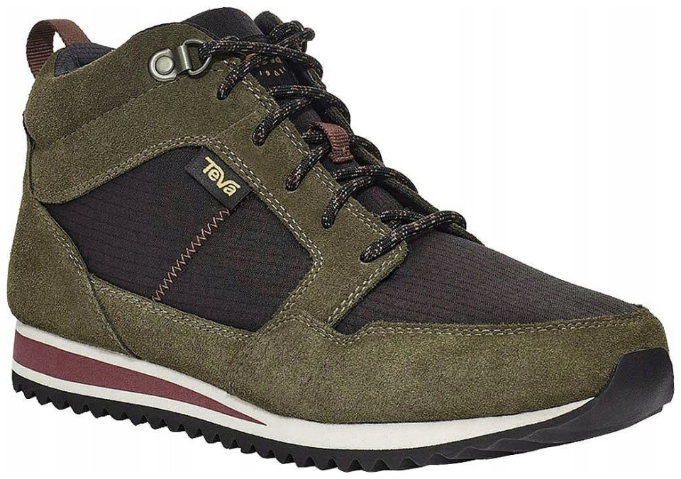 Kapcie męskie Teva Highside Mid z powłoką powierzchniową Teva Rapid, która chroni przed rozpryskami i plamami. materiał: wytrzymały zamsz oraz tkanina Technologia Max-Comf zapewnia długotrwałe lepsze wsparcie dzięki wstawkom z miękkiej pianki z pamięcią kształtu, warstwie trwałej pianki i wkładkom wykonanym z materiałów pochodzących z recyklingu mocna gumowa oraz przywierająca podeszwa z zębami zapewniają maksymalną przyczepność sznurówki poliestrowe z recyklingu podeszwa środkowa wykonana z materiału EVA tkanina ripstop marka Teva dołącza do Leather Working Group (LWG), aby promować i przyczyniać się do najlepszych praktyk środowiskowych w przemyśle skórzanym wzmocniony obcas oraz czubek kostkowe obuwie Teva buty męskie Teva obuwie outdoorowe Teva