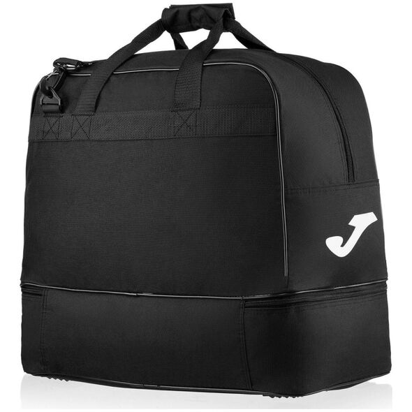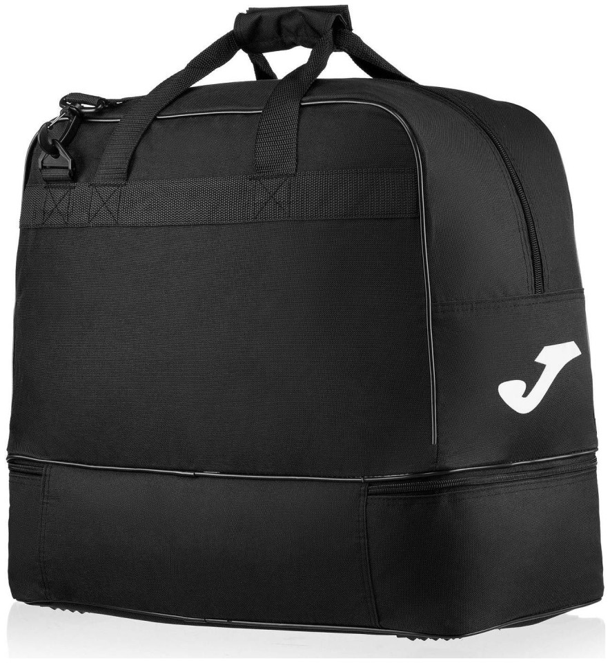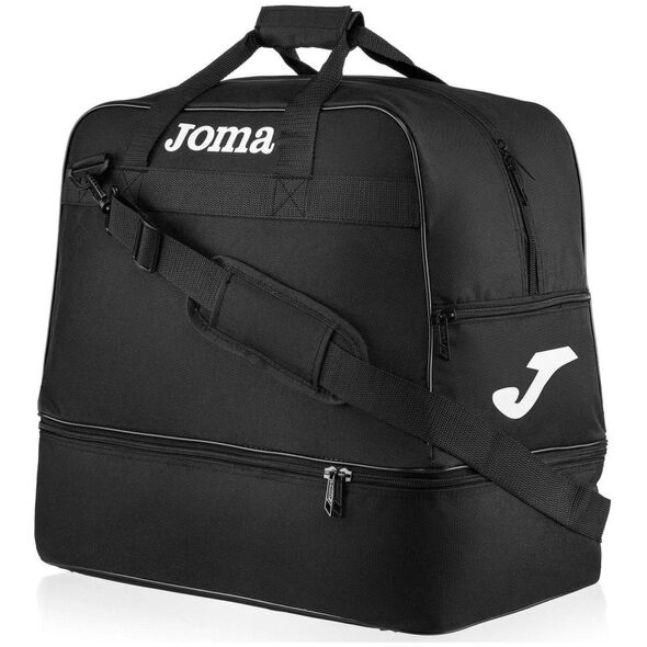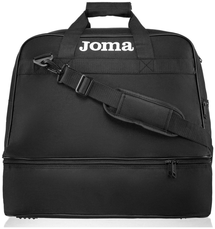 Torba JOMA 400007.100 TRAINING LARGEWymiary: 48cm x 49cm x 29cmWysokość dolnej komory na buty: 13cmMateriał: 100% poliesterOdpinany uchwyt do noszenia na ramieniuKontrastowe logo Joma na froncie i z bokuStopki izolujące od ziemi na dnieOsłona na pasie na ramięDolna komora na obuwie1 boczna kieszonka na suwakPojemność: ok 63LTraining III marki Joma to pojemna torba piłkarska, która pomieści wszystkie treningowe niezbędniki.Torba posiada dolną, zapinaną na suwak kieszeń dedykowaną na zmienne obuwie. Z boku znajduje się mała kieszonka na praktyczne drobiazgi, a większość ekwipunku zmieścisz w obszernej komorze głównej. Poliestrowa tkanina zapewnia odporność na przetarcia. Torbę możesz przenosić na ramieniu lub w dłoni dzięki uchwytom spinanym rzepem.