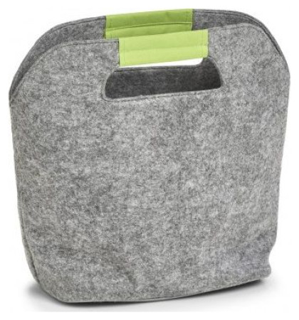 Μια μαλακή τσόχα που καθαρίζεται εύκολα, μονωτική τσάντα, π.χ. Υλικό: τσόχα Μέγεθος: 24 x 16 x 28 cm Χρώμα λαβής: πράσινο Χρώμα τσόχα: γκρι
