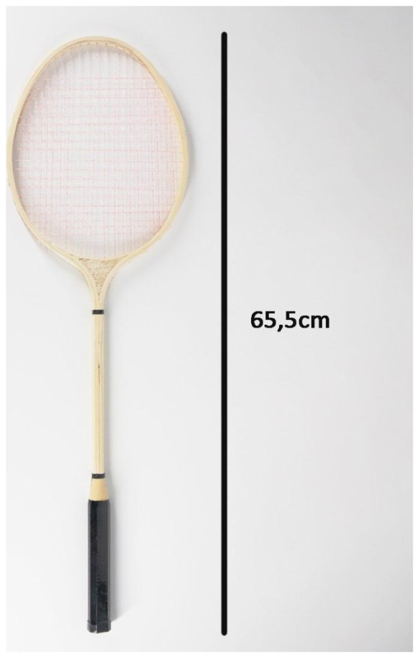 2 μπάντμιντον, μήκους 65,5 εκ. Είναι συσκευασμένα σε δίχτυ. 1 βέλος. Προορίζεται για παιδιά από 6 ετών.