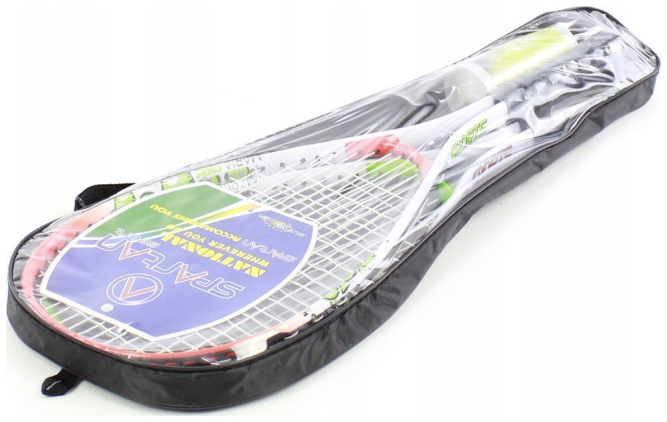 SPEED BADMINTON SET από τη φημισμένη εταιρεία "SPARTAN" Τεχνικές πληροφορίες: ελαφριά και ανθεκτική ρακέτα αλουμινίου, βάρους μόνο 190 g, ιδανικό σετ για παιχνίδι σε εξωτερικούς χώρους, ακόμη και με αέρα, μήκος ρακέτας: 58 cm, διαστάσεις κεφαλής: 21 x 32 cm πολύ γρήγορα και αντιανεμικές στρόφιγγες - 3 τεμαχίων, σετ κατάλληλο για παιχνίδι σε εξωτερικούς και εσωτερικούς χώρους, ανθεκτικές νάιλον χορδές ρακέτες με τάση 16 κιλά, το παιχνίδι "γρήγορο μπάντμιντον" είναι μια εξαιρετική προπόνηση ταχύτητας και ευκινησίας, μπορείτε να παίξετε σε πολύ μικρό χώρο, ακόμη και σε απόσταση 3 μέτρων, το σετ περιλαμβάνει: 2 ρακέτες, 3 κουκέτες και ένα κάλυμμα με ιμάντα ώμου, ένα προϊόν υψηλής ποιότητας από την Spartan παιχνίδια "γρήγορο μπάντμιντον" - speed badminton, 2 ρακέτες + 3 βελάκια + τσάντα. Το Speed Badminton, χάρη στις μικρότερες και βαρύτερες στρόφιγγες, είναι ανθεκτικό στον αέρα, μπορείτε να παίξετε ακόμη και στην παραλία.