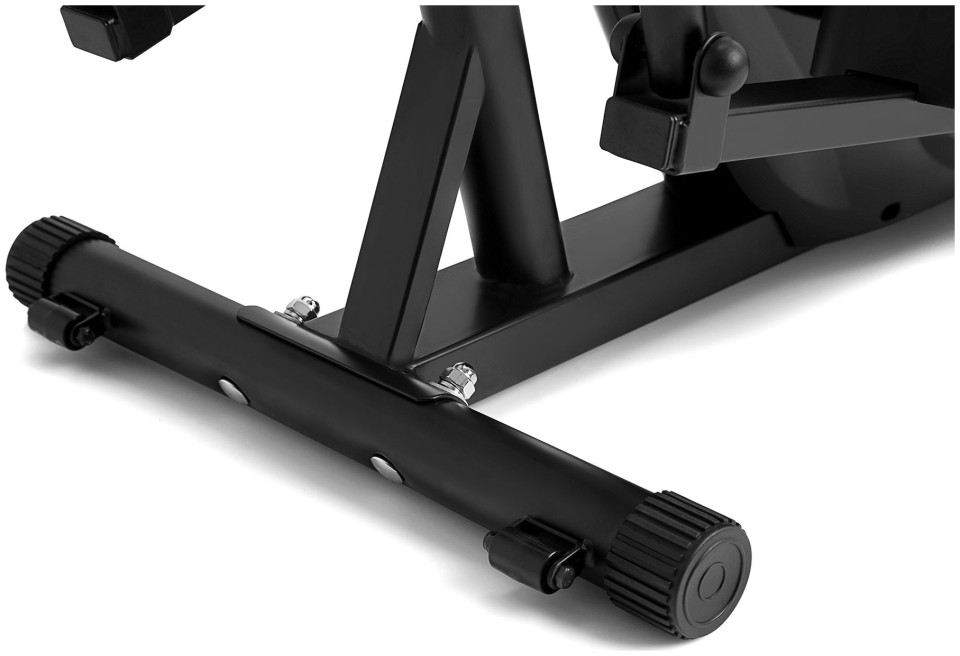 Χάρη στους τροχούς μεταφοράς, το τροχιακό μπορεί εύκολα να μετακινηθεί κατά τη διάρκεια και μετά την προπόνησή σας. Τα πόδια στις βάσεις επιτρέπουν την ακριβή ισοπέδωσή του.