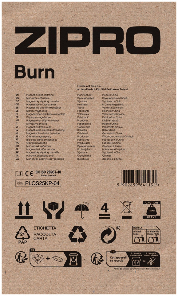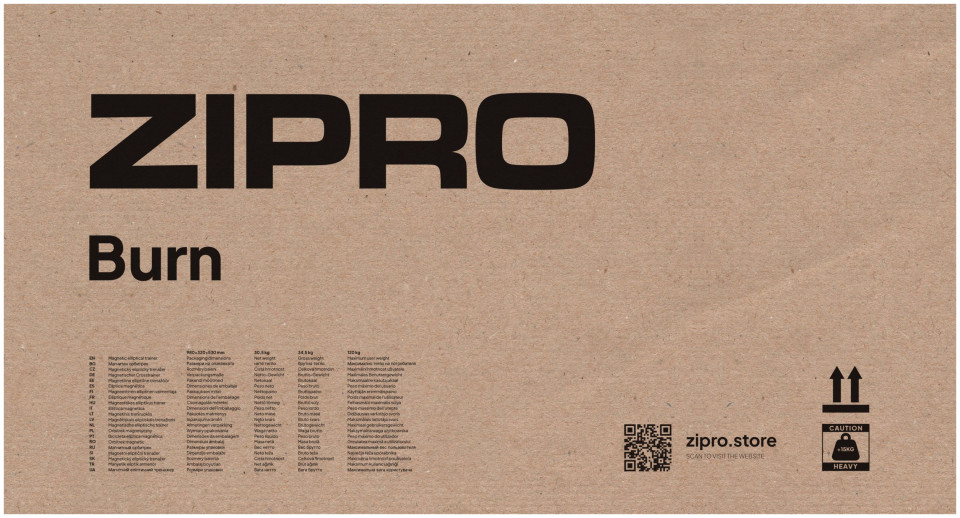 Τα μεγάλα στηρίγματα ποδιών και οι στιβαρές κινητές λαβές δίνουν μια αίσθηση ασφάλειας κατά τη διάρκεια της προπόνησης. Ο σχεδιασμός του τροχιακού ZIPRO Burn είναι φιλικός, οι χειρολαβές με προφίλ καλύπτονται με άνετο αφρό, η θέση του τιμονιού με αισθητήρες καρδιακού ρυθμού σας επιτρέπει να ελέγχετε το ύψος του σφυγμού σας, χωρίς να επηρεάζετε την ομαλότητα της κίνησης και τον ρυθμό της άσκησης.