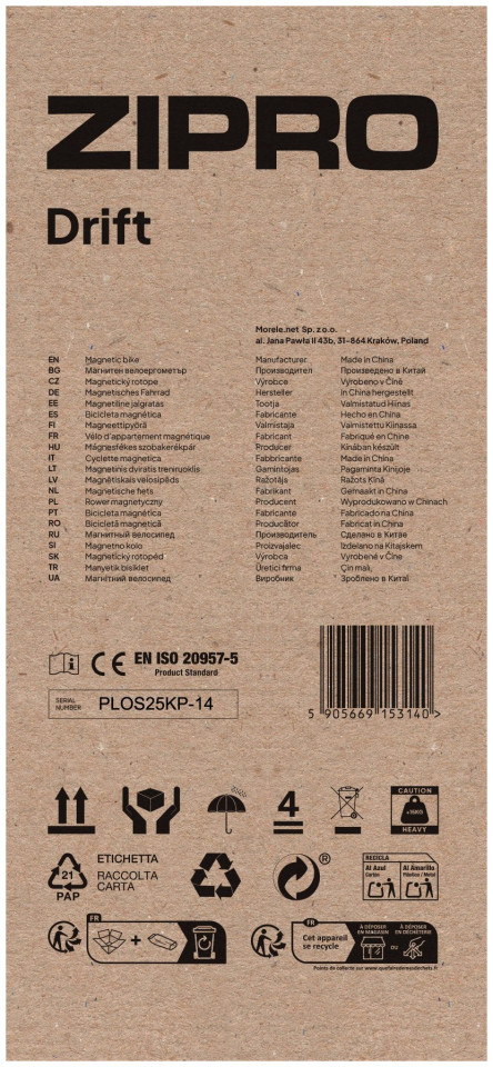 Το ποδήλατο ZIPRO Drift έχει ισχυρή δομή με μοντέρνο και διαχρονικό σχεδιασμό, χάρη στο οποίο παραμένει σταθερό κατά την άσκηση και εξασφαλίζει πλήρη ασφάλεια. Οι βέλτιστες διαστάσεις και το βάρος το καθιστούν ιδανικό για χρήση σε οικιακά περιβάλλοντα με περιορισμένο χώρο.