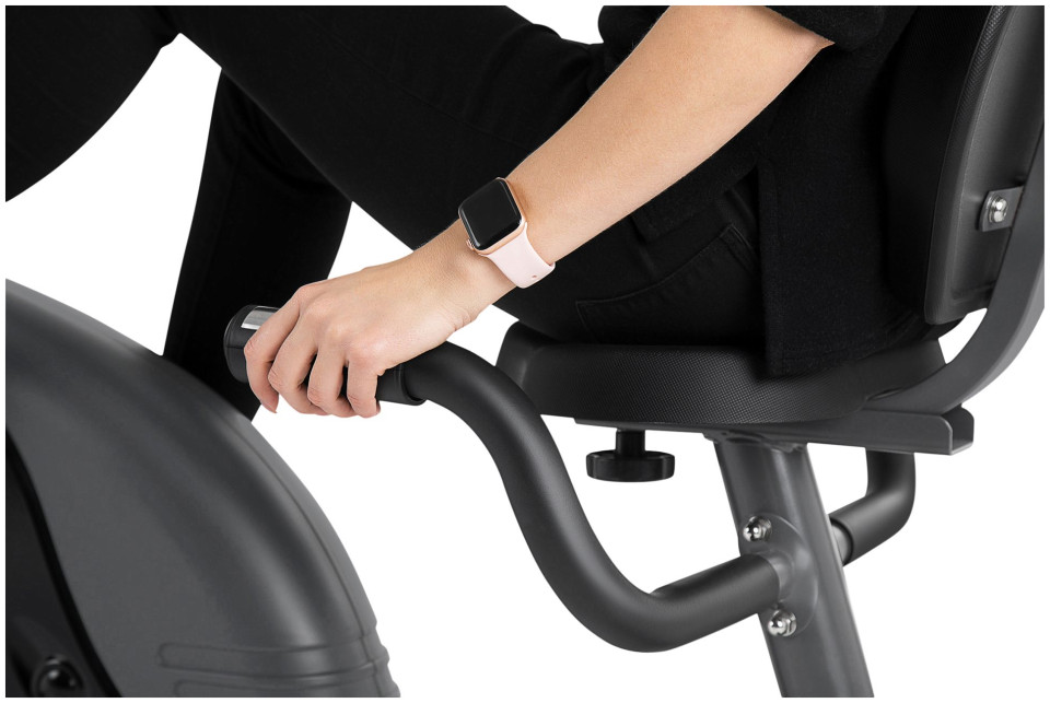 Η ευρεία ρύθμιση της απόστασης μεταξύ της σέλας και των πεντάλ σάς επιτρέπει να προσαρμόσετε με ακρίβεια το ποδήλατο στο ύψος του γυμναστηρίου.