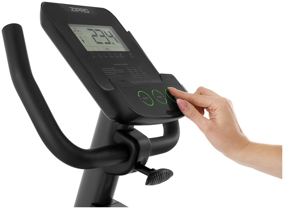 Το ποδήλατο είναι εξοπλισμένο με υπολογιστή με καθαρή οθόνη LCD που εμφανίζει τις πιο σημαντικές πληροφορίες για την προπόνηση. Μετρά τον χρόνο, την ταχύτητα, την απόσταση, τις θερμίδες που καίγονται, τις στροφές ανά λεπτό και τους παλμούς που καταγράφονται από αισθητήρες αφής που τοποθετούνται στις λαβές κοντά στο κάθισμα. Χάρη στη λειτουργία σάρωσης, μεμονωμένες παράμετροι εμφανίζονται κυκλικά, κάτι που σας επιτρέπει να τις βλέπετε χωρίς να χρειάζεται να πατήσετε κουμπιά και να διαταράξετε τον ρυθμό προπόνησης. Μετράτε τον καρδιακό σας ρυθμό τοποθετώντας τα χέρια σας στις λαβές με αισθητήρες που τοποθετούνται στα πλαϊνά του καθίσματος.