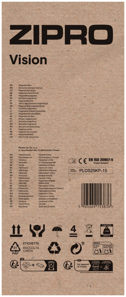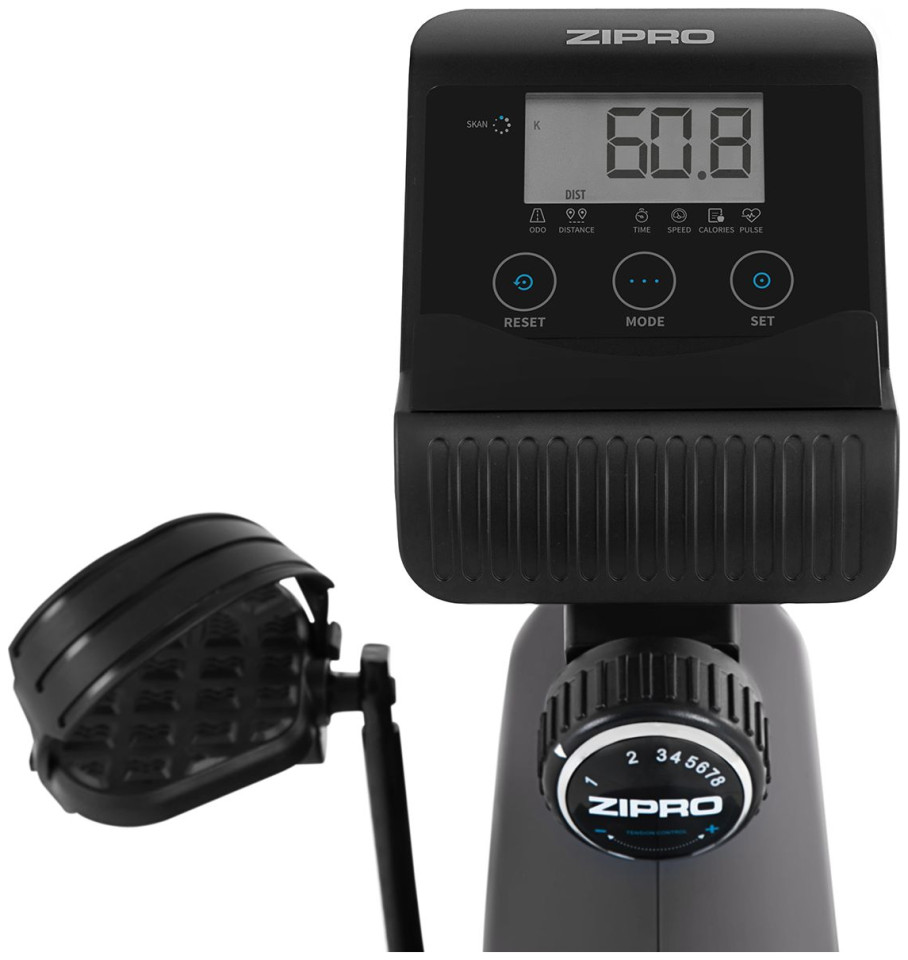 ΜΠΙΣΤΕ ΣΤΟΝ ΚΟΣΜΟ ΤΟΥ ZIPRO ΜΕ ΤΗΝ ΟΜΑΔΑ JOANNA ĘDRZEJCZYK ΚΑΙ ZIPRO Προσεγγίζουμε την υγεία σας ολιστικά και στο υψηλότερο επίπεδο. Έχουμε δημιουργήσει μια ΟΜΑΔΑ ZIPRO για εσάς που υποστηρίζει την κοινότητά μας. Πρόκειται για μια προσεκτικά επιλεγμένη ομάδα επαγγελματιών εκπαιδευτών για τους οποίους η λέξη «ρουτίνα» δεν υπάρχει. Είναι κύριοι στους τομείς τους, μοναδικοί, φιλόδοξοι - πάντα μαζί σας. Το ZIPRO δεν είναι μόνο κορυφαίος εξοπλισμός εκπαίδευσης - είναι γνώση και εμπειρία στην πορεία σας προς την επιτυχία. Η πλατφόρμα μας είναι μια αθλητική κοινότητα ανθρώπων σαν εσάς. Είναι επίσης διεγερτική μουσική, συμβουλές για υγιεινή διατροφή και ευεξία όχι μόνο για το σώμα σας, αλλά και για το πνεύμα σας. Μοναδική άνεση προπόνησης Το Zipro Vision είναι η καλύτερη απάντηση στο ερώτημα πώς να προπονείστε τακτικά σε ένα στατικό ποδήλατο χωρίς υπερβολική καταπόνηση στη σπονδυλική στήλη Εξοπλισμένο με φαρδιά σέλα με μεγάλη πλάτη με προφίλ, εξασφαλίζει εξαιρετική οδηγική άνεση και αποτελεσματικότητα εκπαίδευσης ίση με αυτή που επιτυγχάνεται στα όρθια ποδήλατα. Ιδανικό για ένα διαμέρισμα ή γυμναστήριο στο σπίτι, εργονομικό και αξιόπιστο. Χάρη στη ρυθμιζόμενη βάση, μπορείτε να ρυθμίσετε την απόσταση της σέλας από τα πεντάλ ανάλογα με το ύψος σας. Τα αυτοεπιπεδούμενα πεντάλ με αντιολισθητική επιφάνεια διαθέτουν ρυθμιζόμενους ιμάντες που κρατούν τα πόδια σας σταθερά κατά την οδήγηση. Το ποδήλατο Vision χρησιμοποιεί ένα σύστημα μαγνητικής αντίστασης που εγγυάται ομαλή κίνηση και αθόρυβη λειτουργία. Αλλάζετε το φορτίο χρησιμοποιώντας ένα εργονομικό πόμολο με ζυγαριά 8 βημάτων. Υπολογιστής λειτουργικής εκπαίδευσης Το ποδήλατο είναι εξοπλισμένο με υπολογιστή με μεγάλη οθόνη LCD, χάρη στην οποία μπορείτε να διαβάσετε εύκολα τις εμφανιζόμενες παραμέτρους. Η παρακολούθηση των ενδείξεων γίνεται ευκολότερη από τη λειτουργία σάρωσης, η οποία εμφανίζει μεμονωμένες τιμές κυκλικά. Ο υπολογιστής σας επιτρέπει να προγραμματίσετε την προπόνησή σας - εσείς ορίζετε τον χρόνο οδήγησης, την απόσταση που θα διανυθεί και τον αριθμό των θερμίδων. Ο υπολογιστής μετρά αντίστροφα τις καθορισμένες τιμές και όταν τελειώσει η αντίστροφη μέτρηση, ακούγεται ένα ακουστικό σήμα. Αυτή η λύση διευκολύνει σημαντικά τη διαχείριση της εκπαίδευσης, τον προγραμματισμό και την ακριβή επίτευξη των στόχων. Βάση για φορητή συσκευή Η χρήση του ποδηλάτου Vision Zipro στο διαμέρισμα γίνεται ευκολότερη με τους κυλίνδρους μεταφοράς στο μπροστινό μέρος και τα μαξιλαράκια ισοπέδωσης στον πίσω σταθεροποιητή. Εάν ασκείστε ενώ ακούτε μουσική ή περιηγείστε στο Διαδίκτυο από φορητή συσκευή, μπορείτε να αφήσετε με ασφάλεια το τηλέφωνο ή το iPhone σας χάρη στη βάση στην κονσόλα του υπολογιστή. Η άνεση της άσκησης στο σπίτι Διαισθητική λειτουργία υπολογιστή Η καθαρή οθόνη και τα μεγάλα, βολικά κουμπιά διευκολύνουν τον χειρισμό του υπολογιστή, τον έλεγχο των αποτελεσμάτων και τον ορισμό τιμών. Πρακτικό ράφι τηλεφώνου Κατά τη διάρκεια της άσκησης, μπορείτε να έχετε πάντα το τηλέφωνό σας στο χέρι και να το τοποθετείτε με ασφάλεια στο pad του υπολογιστή σας. Έλεγχος παλμών Ρυθμίστε το επίπεδο γυαλίσματος που δεν θέλετε να ξεπεράσετε κατά τη διάρκεια της προπόνησης. Όταν η τιμή του αυξηθεί, ο υπολογιστής θα ενεργοποιήσει ένα συναγερμό. Η μέτρηση είναι βολική χάρη στους αισθητήρες που τοποθετούνται στις πλάτες των καθ