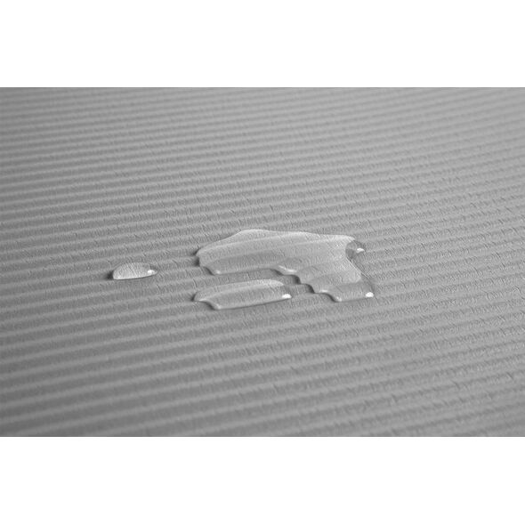 Odporność na działanie wilgoci sprawia, że mata jest odporna na wilgoć i łatwo ją utrzymać w czystości. Duża sprężystość pianki zapewnia doskonałą amortyzację podczas ćwiczeń, rozłożona mata nie przesuwa się po podłożu.