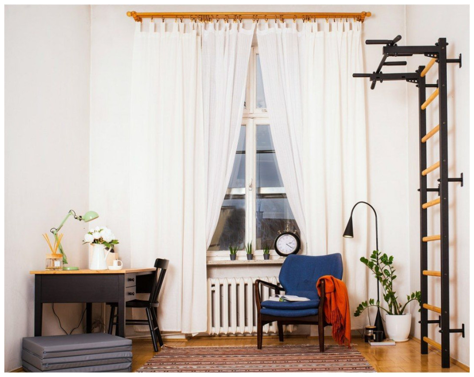 Μια μόνιμα τοποθετημένη μεταλλική ράβδος έλξης, η οποία είναι εξοπλισμένη με 6 διαφορετικές λαβές, σας επιτρέπει να εργάζεστε στη δύναμη των μυών του χεριού και της πλάτης σας χρησιμοποιώντας διαφορετικές λαβές, π.χ.