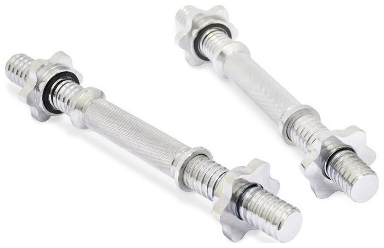 Parametry:Rodzaj gryfu: prostyIlość: 2 gryfy i 4 nakrętki w zestawieTyp: śrubowyDługość całkowita: 35,5 cmŚrednica części chwytnej: 30 mmŚrednica części na obciążenia: 30 mmDługość części chwytnej: 12 cmDługość części na obciążenia: 10,5 cm (po obu stronach gryfu)Materiał: chromowana stalAntypoślizgowe, radełkowane uchwytyLiczba zacisków w zestawie: 4 nakrętki (po 2 na każdy gryf)Waga pojedynczego gryfu z nakrętkami: 2,2 kgMaksymalne obciążenie pojedynczego gryfu: 80 kgWaga paczki: 4,5 kgWymiary paczki: 38 x 9 x 8 cm