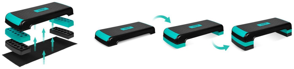 δυνατότητα τοποθέτησης των ποδιών κάτω από τη στέπα - συμπαγές, εύκολο στην αποθήκευση,