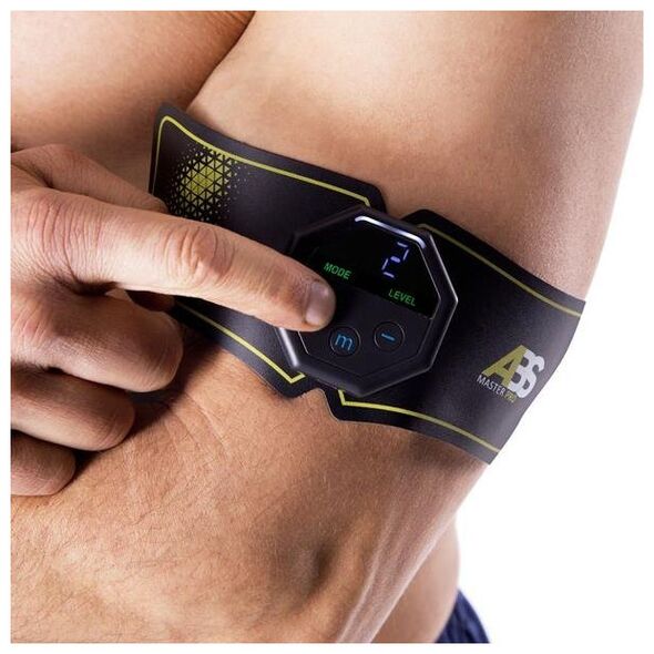Τα ηλεκτρικά κύματα EMS που μεταδίδει το ABS Master Pro μέσω του σώματός μας προκαλούν συστολή και χαλάρωση των μυών. Αυτή η ώθηση προέρχεται από ένα ηλεκτρόδιο τοποθετημένο στην επικάλυψη, το οποίο φοριέται κατά τη διάρκεια της προπόνησης. Οι ωθήσεις που στέλνονται φτάνουν στις βαθύτερες μυϊκές ίνες, γεγονός που βελτιώνει την κατάστασή τους και εγγυάται αποτελέσματα πολύ πιο γρήγορα από την κλασική προπόνηση.