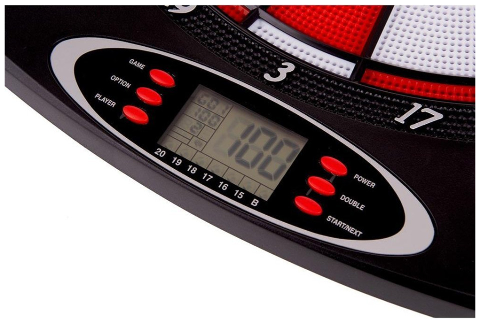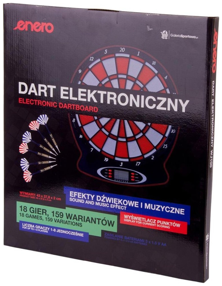 Νιώθετε ποτέ να πετάξετε κάτι στον τοίχο; Πιάστε το βελάκι και ρίξτε στο βελάκι Enero Electronic Dart που είναι εξοπλισμένο με οθόνη LCD σας επιτρέπει να παρακολουθείτε τα τρέχοντα αποτελέσματα συμπαγές υλικό ανθεκτικό στην κρούση, εξασφαλίζει μακροχρόνια χρήση μεγάλων διαστάσεων του βελονιού βοηθούν στη σκόπευση, το οποίο προστατεύει τους τοίχους από την επίθεση!! Πιθανή ζημιά Τα ζωντανά χρώματα του ταμπλό σας βοηθούν να το διαβάσετε καλά σημεία από μια ορισμένη απόσταση τα ηχητικά εφέ τονίζουν επιπλέον τη στιγμή της νίκης 18 παιχνίδια και 159 παραλλαγές θα εξασφαλίσουν ποικιλία και έλλειψη ρουτίνας στα παιχνίδια οι ειδικές λαβές στο καντράν θα επιτρέψουν τοποθετήστε το π.χ. σε έναν τοίχο, έχει πιστοποιητικό συμμόρφωσης CE Το να ρίχνετε βελάκια στο ηλεκτρονικό βελάκι είναι εκπληκτικό, εισάγοντας ένα στοιχείο ανταγωνισμού. Χάρη σε αυτό, θα βρείτε έναν τρόπο να ανακουφίσετε το άγχος Μπορείτε να χρησιμοποιήσετε την ασπίδα μόνοι σας ή με την οικογένεια ή τους φίλους σας. Με το ηλεκτρονικό βελάκι Enero, μπορείτε να παίξετε τουρνουά με έως και 8 άτομα ταυτόχρονα, και 18 λειτουργίες παιχνιδιού, συμπεριλαμβανομένων 159 παραλλαγών, θα σας επιτρέψουν να επιλέξετε την τέλεια επιλογή ψυχαγωγίας Το βελάκι Enero είναι μια εξαιρετική επιλογή για εσάς. Μην καθυστερείτε την αγορά σας και σίγουρα θα κερδίσετε τον τίτλο του πρωταθλητή στη ρίψη βελών. Διαθέτει μια μεγάλη γκάμα προϊόντων, που κατασκευάζονται με τη μέγιστη προσοχή με βάση τις τρέχουσες τάσεις της αγοράς. Καταβάλλει κάθε δυνατή προσπάθεια για να καλύψει τις απαιτήσεις των πελατών Παράμετροι Αριθμός παικτών: 1 - 8 Αριθμός παραλλαγών / αριθμός παιχνιδιών: 159 / 18 Φωνητική σηματοδότηση: ναι Οθόνη: ναι, 1 οθόνη LCD Αυτόματη απενεργοποίηση: ναι / αδράνεια μετά από 30 λεπτά. μπαταρίες - 3 x 1,5 V AA (δεν περιλαμβάνονται) Διαστάσεις: 43 x 38 x 2 cm (Υ x Π x Β) Διαστάσεις συσκευασίας (κιβώτιο): 44 x 39 x 2,5 cm (Μ x Π x Β) Καθαρό βάρος: 0,848 kg Μεικτό βάρος: 1,850 kg Χρώμα: μαύρο, κόκκινο, λευκό, μπλε Περιλαμβάνεται : ασπίδα, 6 φτερά (3 κόκκινο, 3 μπλε), 6 βαρέλια, 6 καπάκια (3 κόκκινα, 3 μπλε), 11 αιχμές βελών, 3 βίδες{Type} Ηλεκτρονικό . {Type} Ηλεκτρονικό . {Type} Ηλεκτρονικό . {Type} Ηλεκτρονικό . {Type} Ηλεκτρονικό . {Type} Ηλεκτρονικό . {Διάμετρος [cm]} 43 . {Διάμετρος [cm]} 43 . {Διάμετρος [cm]} 43 . {Διάμετρος [cm]} 43 . {Διάμετρος [cm]} 43 . {Διάμετρος [cm]} 43