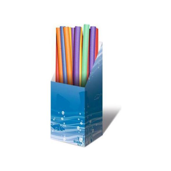 Makaron basenowy różnokolorowy, wykonany z gąbki. Pomocny przy nauce pływania, może otrzymywać różne kształty. Wymiary: 159 cm długości, 6 cm średnicy.