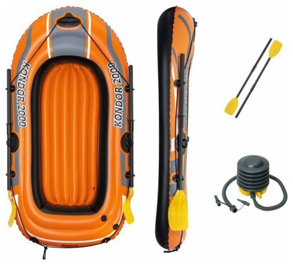 Το Kondor 2000 pontoon από τη διάσημη εταιρεία Bestway είναι ένα ιδανικό πλωτήριο που επιτρέπει την ψυχαγωγική κολύμβηση τόσο για παιδιά όσο και για ενήλικες. Χάρη στο μέγεθός του 186cm x 100cm, μπορεί εύκολα να φιλοξενήσει έναν ενήλικα και ένα παιδί. Η υψηλότερης ποιότητας πλωτήρας που αποτελείται από τρεις θαλάμους και ένα φουσκωτό δάπεδο αυξάνοντας την άνεση χρήσης θα εξασφαλίσει καλή και ασφαλή διασκέδαση στην πισίνα, τη θάλασσα ή τη λίμνη. Το σετ περιλαμβάνει 2 κουπιά. Επιπλέον, ο πλωτήρας έχει ένα σχοινί αρπαγής με γάντζους (γύρω) και ένα δακτύλιο ρυμούλκησης. Οι χαμηλού βάρους και οι ξεβιδωμένες βαλβίδες για γρήγορη αποστράγγιση και άντληση αέρα καθιστούν τον πλωτήρα εύκολο στη χρήση.