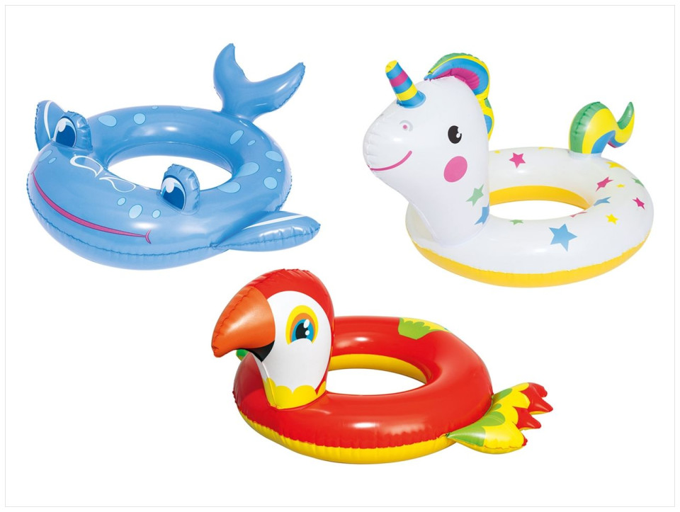 Αυτά τα δαχτυλίδια κολύμβησης σε σχήμα ζώου βοηθούν τα παιδιά να απολαμβάνουν το νερό ενώ είναι διασκεδαστικά και ασφαλή! Κάθε δαχτυλίδι σε σχήμα ζώου είναι κατασκευασμένο από ανθεκτικό υλικό βινυλίου και έχει σχεδιαστεί σε μέγεθος ιδανικό για παιδιά. Μια βαλβίδα ασφαλείας διασφαλίζει ότι ο αέρας δεν διαφεύγει κατά τη διάρκεια του σκληρού παιχνιδιού στο σπίτι. Υπάρχουν τρία διαφορετικά σχήματα και χρώματα: λευκός μονόκερος, μπλε φάλαινα και κόκκινος παπαγάλος.* Βαλβίδα ασφαλείας* Προελεγμένο, ανθεκτικό υλικό βινυλίου Περιλαμβάνεται: Ένας δακτύλιος κολύμβησης{Ηλικία} Από 3 ετών. {Type} Τροχοί . {Κυρίαρχο χρώμα} Επιλέχτηκε τυχαία. {Length} Δεν ισχύει . {Width} Δεν ισχύει . {Διάμετρος} 76 cm . {Θέμα} Επιλέχτηκε τυχαία