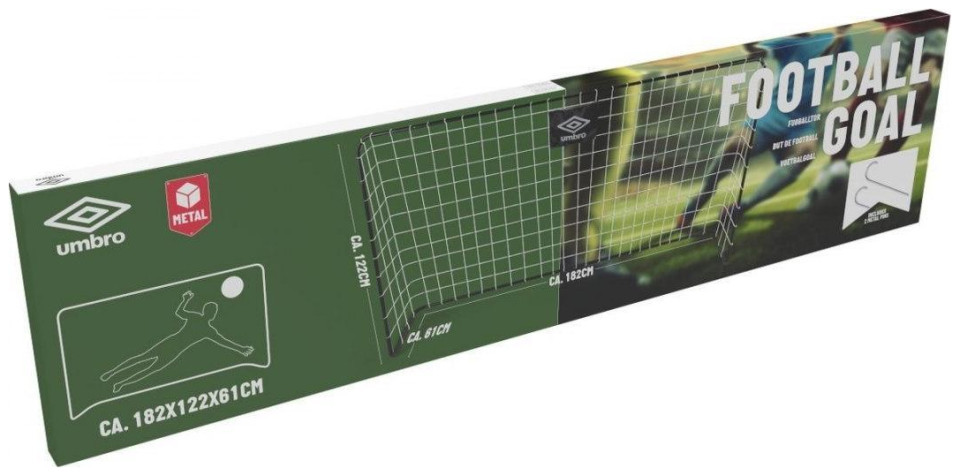 Twoje dziecko uwielbia grać w piłkę nożną? Z BRAMKĄ DO PIŁKI NOŻNEJ Z SIATKĄ 182X122X61CM UMBRO stworzysz mini boisko, a Twoje dziecko będzie rozgrywać mecze, strzelać gole i ćwiczyć celność, kiedy tylko zechce!stabilna konstrukcja i metalowa rama zagwarantują wytrzymałość podczas wielu intensywnych rozgryweksolidna podstawa i śledzie dołączone do zestawu pewnie osadzą bramkę na podłożu, nie będzie się przewracać po każdym golutrwałość zapewni również nylonowa siatka odporna na odkształcenia i różne warunki pogodowełatwa w montażu i demontażu na stabilnym podłożuzestaw idealny do przydomowego ogródka, na działkę i nie tylkoWszyscy wiedzą, że w piłkę nożną można grać w każdym wieku. Ogromną popularnością cieszą się mecze rozgrywane przez rodzinę lub grupę rówieśników. Jeśli w Twojej rodzinie wszyscy lubicie grać w piłkę, a może któreś z Twoich dzieci trenuje ten sport - BRAMKA DO PIŁKI NOŻNEJ Z SIATKĄ 182X122X61CM UMBRO do samodzielnego montażu będzie idealnym wyborem do uzupełnienia ich treningów. Potrzebna Ci będzie już tylko piłka! Po zakończonej rozgrywce możesz szybko i wygodnie złożyć bramkę - dzięki temu jej przechowywanie jest wygodne i zajmuje mało miejsca. Wytrzymała nylonowa siatka przetrwa nie jednego gola i a metalowa rama bramki rozmaite warunki pogodowe.BRAMKA DO PIŁKI NOŻNEJ Z SIATKĄ 182X122X61CM UMBRO to strzał w dziesiątkę, a nawet w bramkę! Nie zwlekaj z zakupem!Umbro to firma założona w roku 1920 w Wilmslow w wielkiej Brytanii jako Humphrey Brothers Clothing. W roku 1924 nazwę zmieniono na Umbro (Humphrey Brothers).Jest sponsorem bardzo wielu drużyn z różnych dziedzin sportu. Obecnie zajmuje się produkcją rozmaitego sprzętu sportowego z siedzibą w Manchesterze.Parametry:Wymiary rozłożonej bramki: 183 x 122 x 61 cm (szer. x wys. x gł.)Szerokość oczek w siatce: 10 cmWymiary rurek: 4 szt. – 78 x 2 cm (dł. x śr.) o grubości ścianki 1 mm, 2 szt.75 x 2 cm (dł. x śr.) grubość ścianki 1 mm , 6 rurek - łącznikówKolor: czarny –bramka , biały - siatkaMateriał: metal malowany proszkowo, nylonWaga netto: 1,990 kgWaga brutto: 2,240 kgWymiary opakowania: 91 x 8 x 17 cm (dł. x gł. x szer.)Zestaw zawiera: składaną bramkę (metalowe rurki 8 szt., złączki 6 szt., 2 śledzie, siatkęMarka: UmbroPrzeznaczenie: dla dzieci powyżej 3 latCertyfikat CE: Tak
