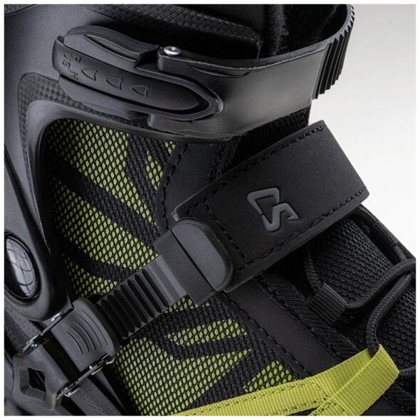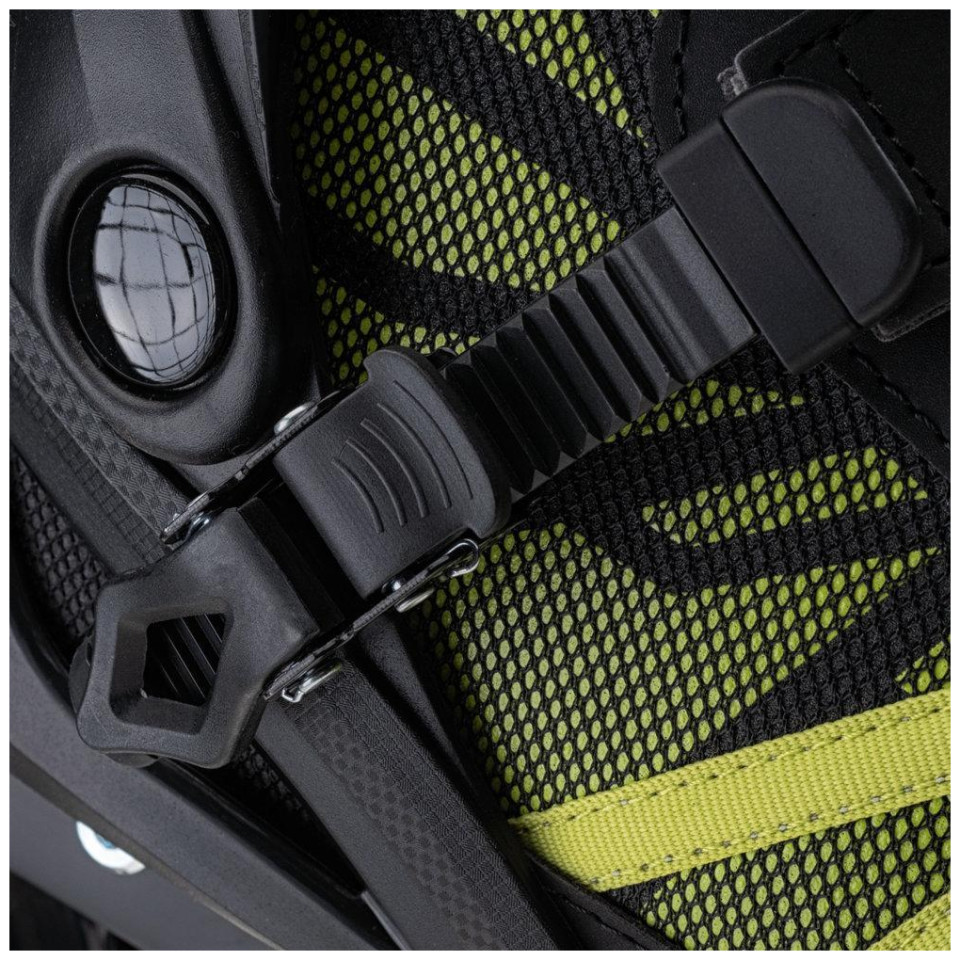 But posiada konstrukcję typu SOFT. Przednia część cholewki jest miękka, a tylna ma twardy element stabilizujący. Odpowiednie trzymanie kostki zapewnia klamra. Wnętrze buta wykonano z przyjemnej, delikatnej tkaniny. Odporny na ścieranie hamulec z TPR sprawi, że zatrzymasz się w każdym, wybranym przez siebie momencie. System wentylacji gwarantuje prawidłową przepuszczalność powietrza. Wysokiej jakości łożyska ABEC-7, ze stali węglowej, dodają płynnego ruchu koła.