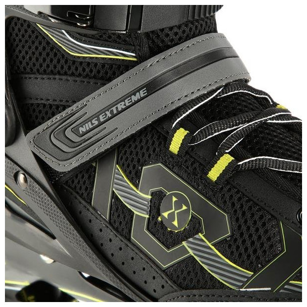 NA9157 Nils Extreme to łyżworolki przeznaczone dla osób średnio zaawansowanych i zaawansowanych do jazdy rekreacyjnej. Ich atrakcyjny wygląd to efekt nie tylko ciekawego wzornictwa, ale przede wszystkim użycia bardzo wysokiej jakości materiałów, które gwarantują bardzo duży komfort użytkowania.Wysoka jakość wykonaniaBut wykonany został z materiału EVA i VELVET, siatki MESH oraz pianki o dużej gęstości. Dzięki temu jazda będzie niezwykle komfortowa. Dodatkowo posiada oddychającą membranę oraz jest wentylowany.Solidna konstrukcjaŁyżworolka jest bardzo lekka dzięki aluminiowej płoza oraz podstawy buta, która wykonana z wysokiej jakości PP. Dodatkowo miękkie kółka gwarantują dobrą przyczepność do podłoża oraz dobrze absorbują wszystkie drgania, natomiast łożyska klasy ABEC9 zapewniają wysoką jakość trakcji.BezpieczeństwoZapięcie buta za pomocą klamry dwusekcyjnej, rzepa i sznurowadeł, zapewnia maksymalne bezpieczeństwo podczas jazdy, natomiast hamulec wykonany z najwyżej jakości PP odpornego na uderzenia spowoduje bezpieczne zatrzymanie, nawet przy stosunkowo dużych prędkościach.Specyfikacja:Płoza łyżworolki: aluminiowaŁożyska: ABEC 9 CHROMEBut: półmiękkiKółka: PU 84 mm/82AMateriał:pianka o dużej gęstości 10mmsiatka MESHVELVETmateriał EVADługość wkładki: 265 mmZapięcie:klamra dwusekcyjnapasek na rzepsznurowanieŁyżworolka wyposażona w hamulec