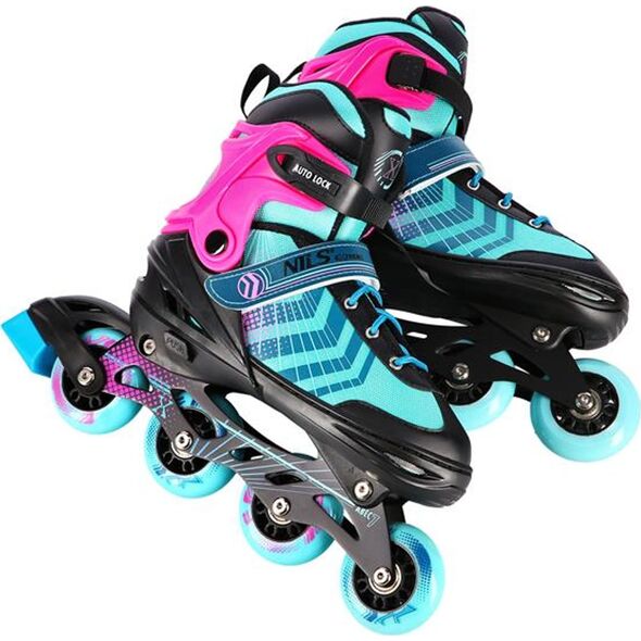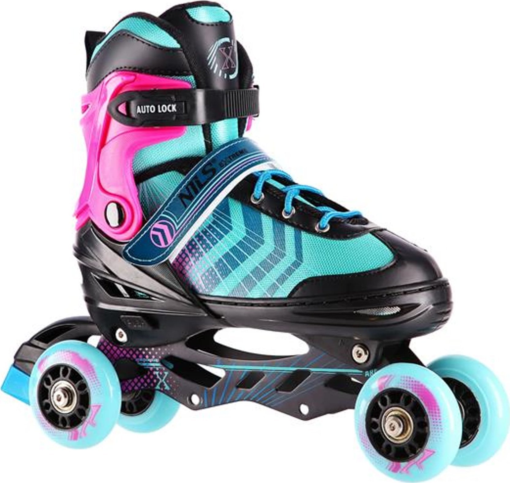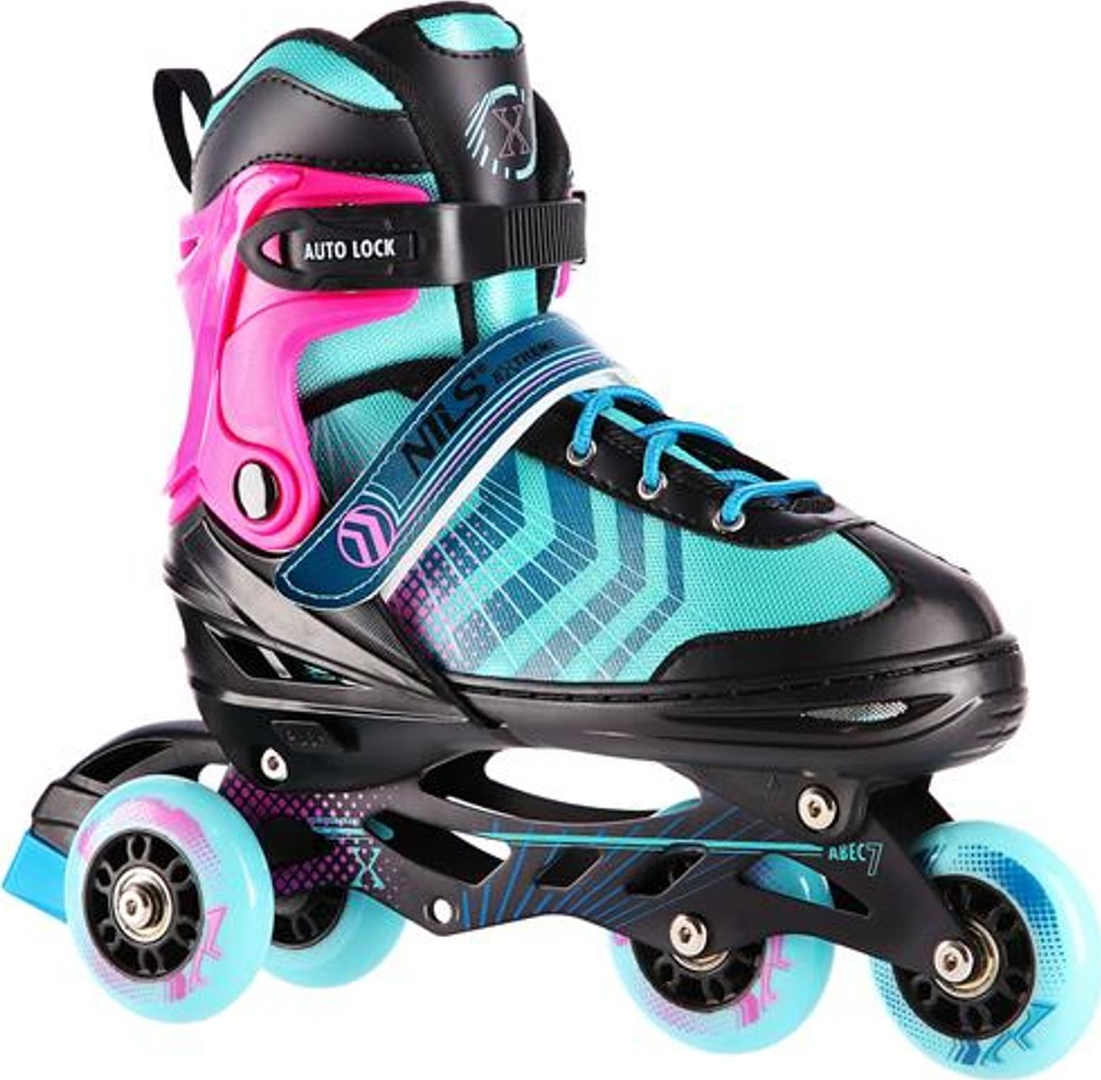 Ρόλερ Nils Extreme NH18192A 4w1 ΜΑΥΡΟ-ΜΩΒ ΜΕΓ. S(29-33) ΠΑΤΙΝΙΑ ΜΕ ΑΝΤΑΛΛΑΚΤΙΚΗ ΠΛΑΚΑ ΧΟΚΕΪ Nils Extreme