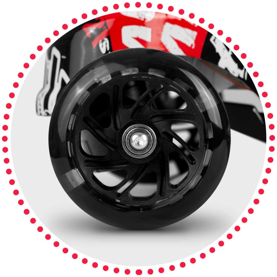 Μεγάλη διασκέδαση! Το σκούτερ έχει ενσωματωμένο δυναμό - χάρη στο οποίο οι τροχοί ανάβουν κατά την οδήγηση!