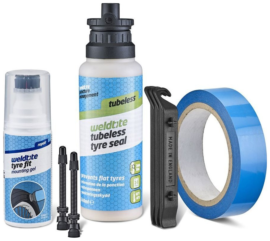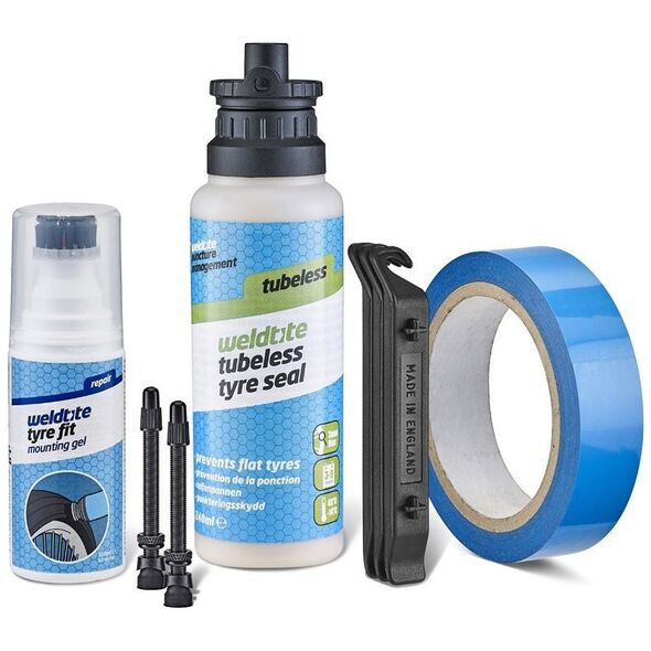 Η καλύτερη λύση για μετατροπή χωρίς σωλήνα. Το πλήρες σύστημα εξαλείφει την ταλαιπωρία της μετάβασης σε ελαστικά χωρίς σωλήνα, παρέχοντας όλα τα εργαλεία (εκτός από την αντλία) για την γρήγορη και εύκολη εγκατάσταση ενός ελαστικού χωρίς σωλήνα. - ταινία χείλους πλάτους 24 mm (mtb) και μήκους 10 m Η Weldtite είναι μια μάρκα με πάνω από 80 χρόνια εμπειρίας που διαθέτει την πιο ολοκληρωμένη και καινοτόμο σειρά προϊόντων συντήρησης ποδηλάτων στον κόσμο. Η προσφορά περιλαμβάνει υλικά επισκευής ελαστικών, εξειδικευμένα λιπαντικά και καθαριστικά, αξεσουάρ βαλβίδων και μεγάλη γκάμα εργαλείων συνεργείου.