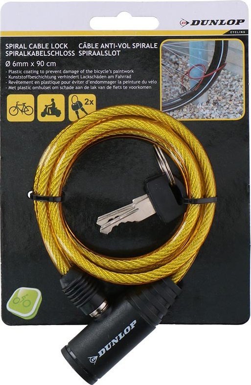 Dunlop Dunlop - Σπιράλ κλειδαριά ποδηλάτου με κλειδί 90 cm (Κίτρινο)