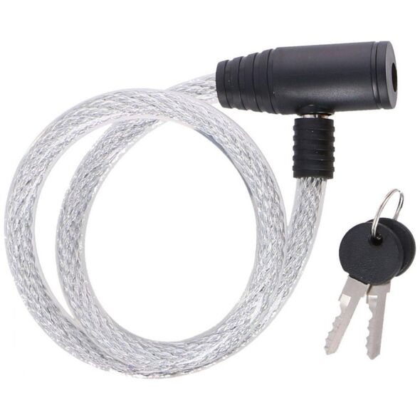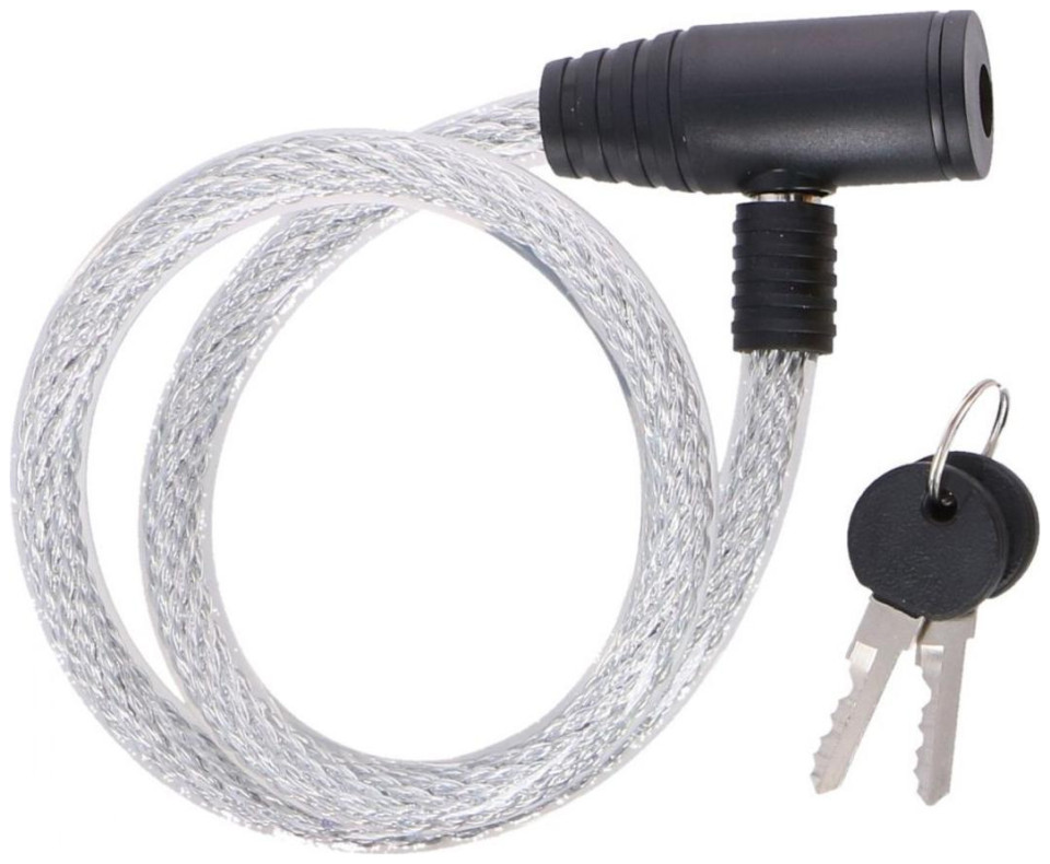 Το πάχος του σχοινιού είναι 12 mm και το συνολικό μήκος είναι 65 cm, καθιστώντας το εξαιρετική προστασία από κλοπή. Το κλείσιμο και το άνοιγμα της κλειδαριάς είναι πολύ απλό, γίνεται ξεκούμπωμα ή στερέωση χρησιμοποιώντας το κλειδί που περιλαμβάνεται.