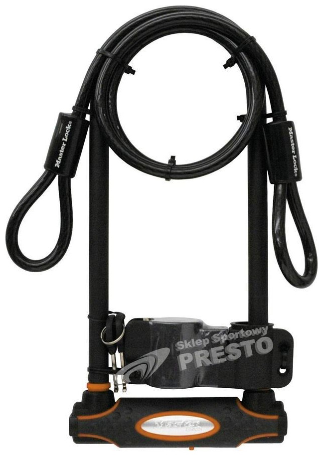 Ασφάλεια ποδηλάτου Master Lock, το οποίο περιλαμβάνει δεσμό με λουκέτο με κλειδί και χαλύβδινο καλώδιο. Οι συγκολλημένοι σύνδεσμοι και ο σκληρυμένος χάλυβας το καθιστούν εξαιρετικά ανθεκτικό και ασφαλίζει το ποδήλατο. Η αλυσίδα βινυλίου και το κάλυμμα καλωδίου προστατεύουν αποτελεσματικά το χρώμα από γρατσουνιές.
