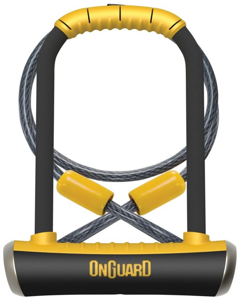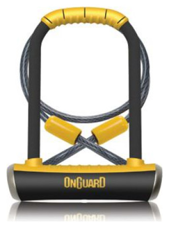 U-lock ποδηλάτου από σκληρυμένο ατσάλι. Κλειδαριά με νέο κύλινδρο ασφάλισης, που παρέχει μεγαλύτερη ασφάλεια από ανεπιθύμητο άνοιγμα. Συνοδεύεται από χαλύβδινο καλώδιο για μεγαλύτερη ασφάλεια. Χάρη στη λαβή, το κούμπωμα μπορεί να μεταφερθεί εύκολα στο ποδήλατο.