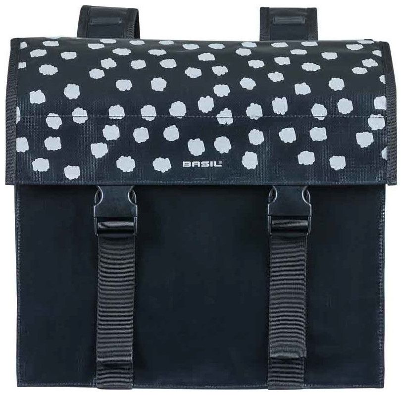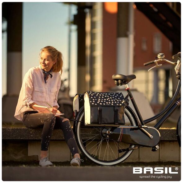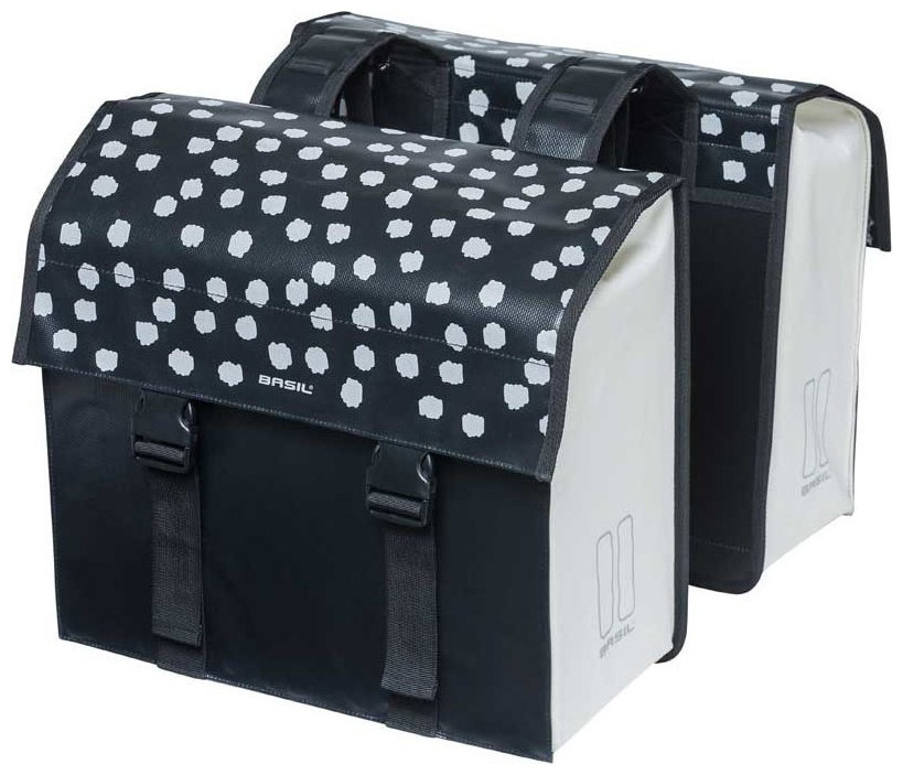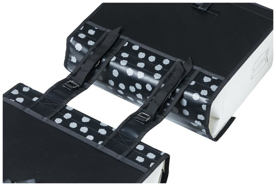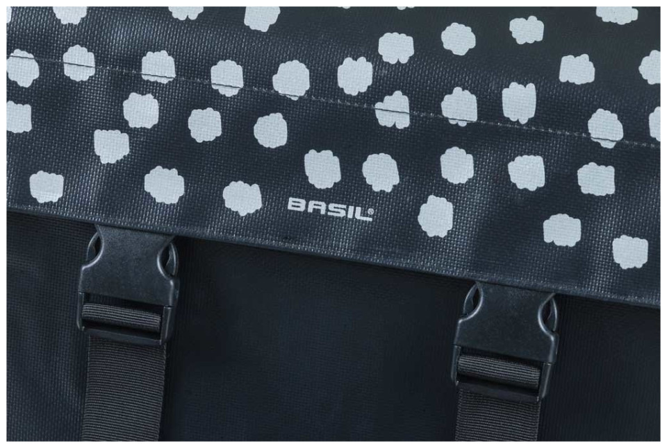 Διπλή τσάντα ποδηλάτου Basil Urban Load Double Pannier Bag 48-53L, Universal Bridge System, 100% αδιάβροχη, μαύρο ανακλαστικό/μαύρο (NEW 2024)
