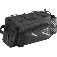 Τσάντα ποδηλάτου για σχάρα με τσέπες και ανακλαστικά - μαύρη