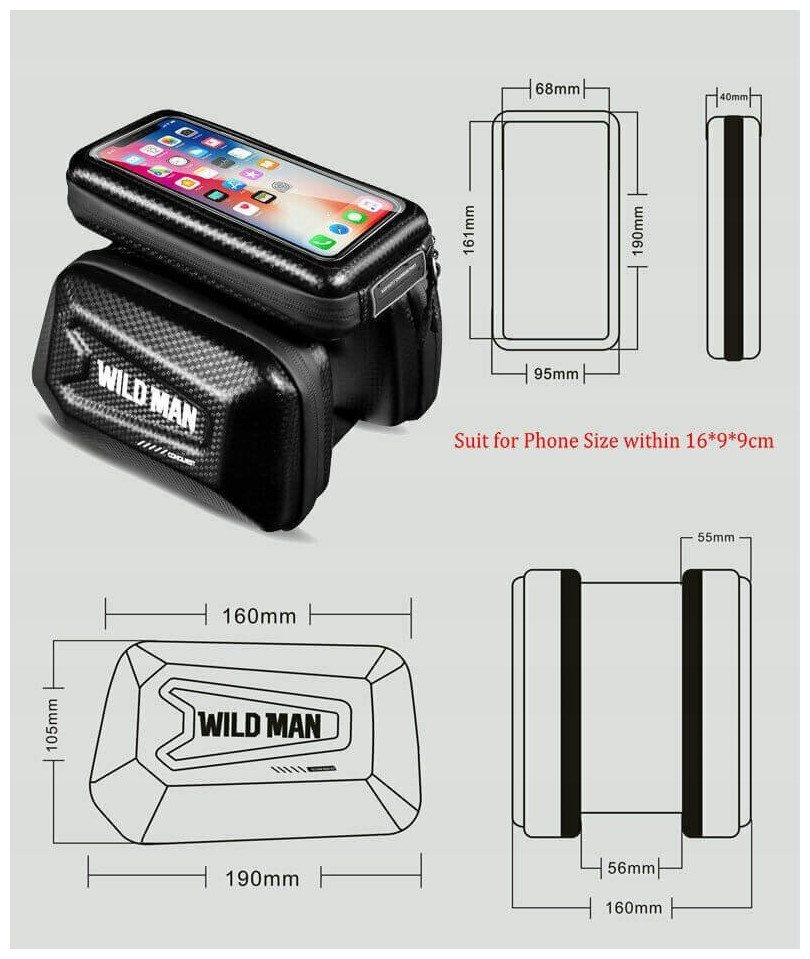 WildMan WILDMAN τσάντα ποδηλάτου για το πλαίσιο με φερμουάρ E6S 1,2L ( 4" - 7" ) μαύρη