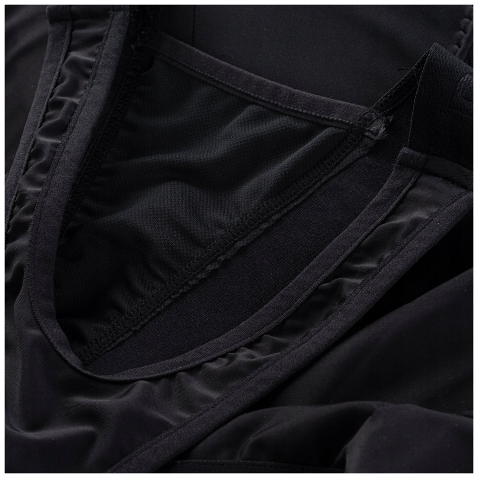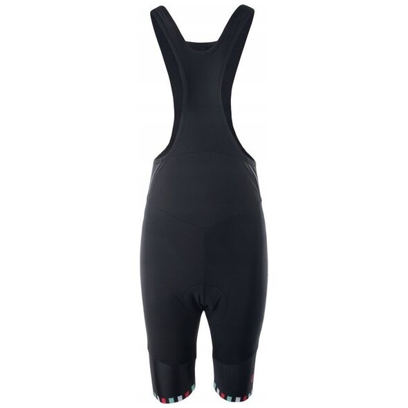 Właściwości:Damskie spodenki rowerowe Radvik.Oddychający, szybkoschnący materiał.Elastyczne szerokie szelki.Płaskie szwy.Elementy odblaskowe.Wyprofilowana żelowa wkładka.Materiał:80% nylon, 20% elastanKolor:czarny