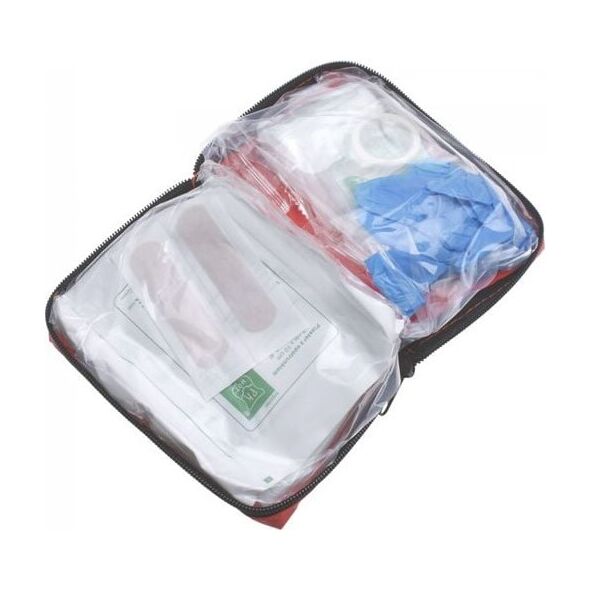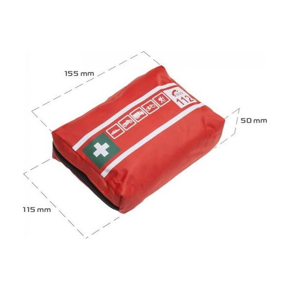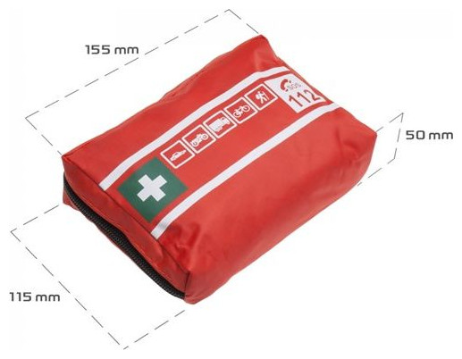 Zastosowanie : przeznaczona do samochodów osobowych oraz ciężarowych Cechy : - Saszetka z wodoodpornej tkaniny. - Zamek błyskawiczny. - Wyroby medyczne oznakowane znakiem CE. - Apteczka spełnia wymagania norm Unii Europejskiej. - Termin ważności produktów sterylnych: 08.2025 - Wymiary: 16x10x5 cm Wyposażenie: - BANDAŻ ELASTYCZNY 6 x 400 cm - 2 sztuki- BANDAŻ ELASTYCZNY 8 x 400 cm - 1 sztuka - PLASTER Z OPATRUNKIEM 6 x 10 cm - 1 sztuka - PLASTER Z OPATRUNKIEM - 2 sztuki - PLASTER NA SZPULCE 5 m x 1,25 cm - 1 sztuka - CHUSTA TRÓJKĄTNA 96 x 96 x 136 cm - 2 sztuki - KOMPRES NA RANY 10 x 10 cm - 1 sztuka - AGRAFKA - 1 sztuka - RĘKAWICE WINYLOWE - 2 sztuki - INSTRUKCJA PIERWSZA POMOC - 1 sztuka