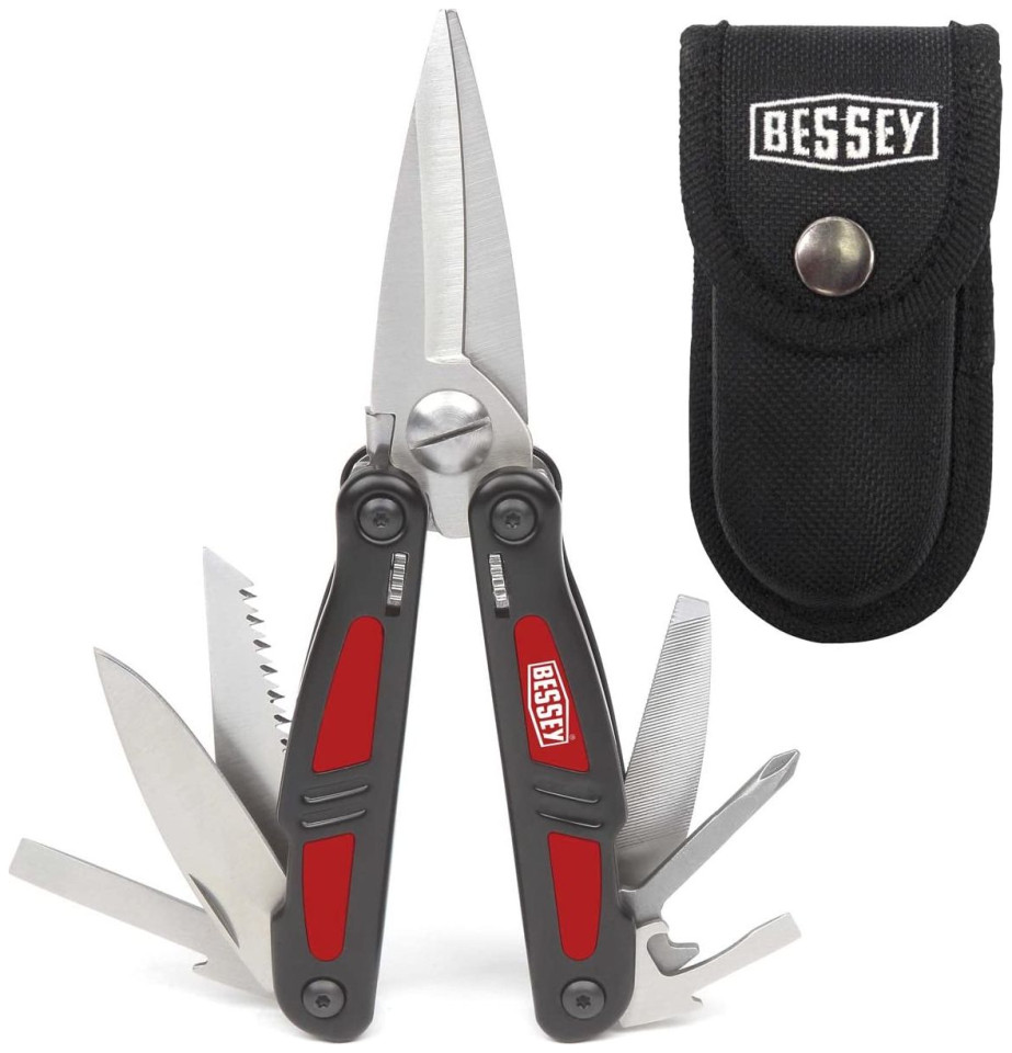 Πολυεργαλείο BESSEY DBST, με ψαλίδι, πολυεργαλείο Περιγραφή: Το πολυεργαλείο Bessey DBST προσφέρει 7 επιλογές: ψαλίδι, μαχαίρι, πριόνι, λίμα, κατσαβίδι Phillips και μεγάλα και μικρά επίπεδα κατσαβίδια. Κόβει δέρμα, κορδόνι, βινύλιο, λεπτό καλώδιο, κορδόνι, λεπτό πλαστικό, χαρτί και άλλα. Η λαβή από ανοξείδωτο χάλυβα με μαλακό στοιχείο εξασφαλίζει αντιολισθητική λειτουργία. Το πολυεργαλείο, το οποίο μπορεί να διπλωθεί σε περίπου 10 cm, αποθηκεύεται πάντα σε μια εύκολα προσβάσιμη θήκη ζώνης από ανθεκτικό νάιλον. Τεχνικά στοιχεία: Χρώμα: μαύρο / κόκκινο Αριθμός εξαρτημάτων: 7 μέρη Συμπεριλαμβανόμενα εργαλεία: εργαλείο λείανσης / κοπής, κατσαβίδι Κατσαβίδι: 3 τεμάχια Ψαλίδι / μαχαίρια 2 τεμάχια: πτυσσόμενο μαχαίρι, ψαλίδι γενικής χρήσης Πριόνι: 1 τεμάχιο Δοχείο: θήκη Περιοχή εφαρμογής : κήπος, σπίτι, εργαστήριο Κωδικός EAN: 4010220031483{Content} Κατσαβίδια . {Content} Μαχαίρια . {Περιεχόμενα} Ψαλίδι . Αρχεία {Content} . {Content} Κατσαβίδια
