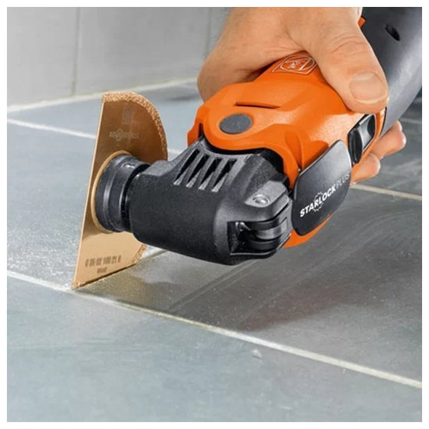MULTIMASTER AMM 300 PLUS START Fein 7 129 32 61 00 0 Ασύρματο ταλαντευόμενο εργαλείοΑποτελεσματικό πολυεργαλείο μπαταρίας για εγκατάσταση και ανακαίνιση με βασικό εξοπλισμό για πριόνισμα σε ξύλο, μέταλλο, γυψοσανίδα και πλαστικό Αντικραδασμικό σύστημα: συνεχής ασφάλεια και άνεση εργασίας χάρη στις ελάχιστες δονήσεις και εξαιρετική μείωση θορύβου.