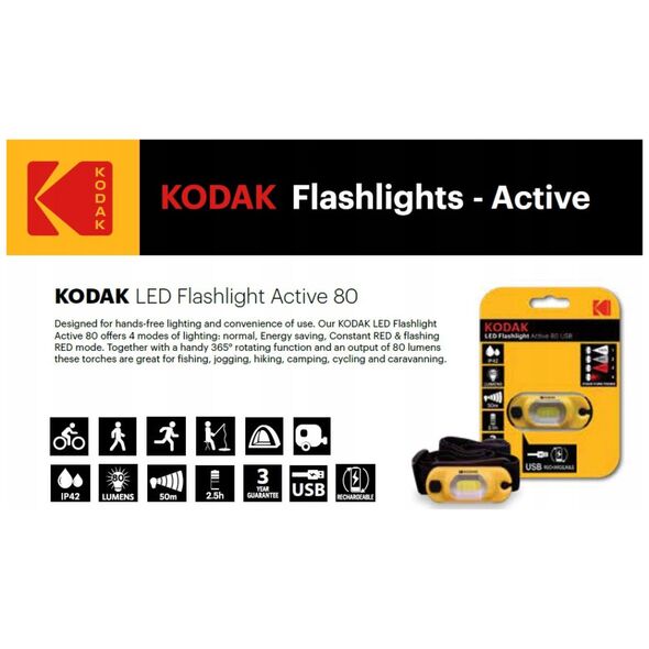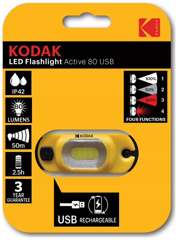 Ο φακός KODAK LED Active 80 προσφέρει 4 λειτουργίες φωτισμού: κανονικό, εξοικονόμηση ενέργειας, σταθερό κόκκινο και κόκκινο που αναβοσβήνει. Σε συνδυασμό με την εύχρηστη λειτουργία περιστροφής 365° και την έξοδο 80 lumen, αυτοί οι φακοί είναι ιδανικοί για ψάρεμα, τζόκινγκ, πεζοπορία, κάμπινγκ, ποδηλασία και τροχόσπιτο.