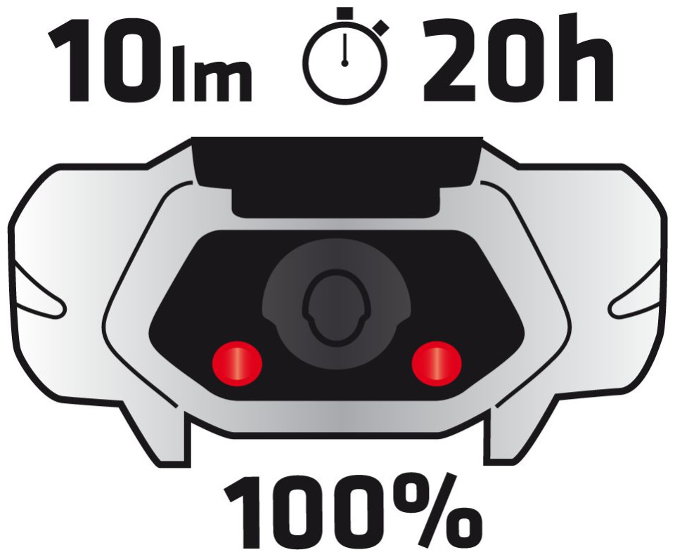Διαθέτει 4 λειτουργίες φωτισμού - λευκό 100%, λευκό 50%, κόκκινο, κόκκινο στροβοσκοπικό