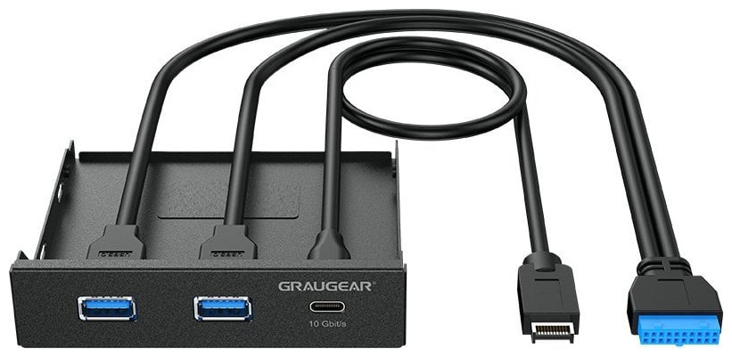Χάρη στον μπροστινό πίνακα GRAUGEAR G-MP01, δεν χρειάζεται πλέον να σκύβετε κάτω από το γραφείο ή να φτάσετε πίσω από τον υπολογιστή. Η υποδοχή USB C® και οι 2 υποδοχές USB τύπου A επιτρέπουν γρήγορη και εύκολη σύνδεση περιφερειακών συσκευών. Στην υποδοχή Type C®, ταχύτητες μεταφοράς δεδομένων έως 10 Gbit/s και για θύρες USB Type A έως 5 Gbit/s. Το απλό και κομψό μπροστινό πάνελ είναι τοποθετημένο σε μια ελεύθερη θέση 3,5" στον υπολογιστή.