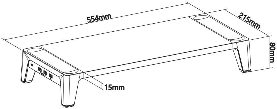 Πλατφόρμα Οθόνης InLine InLine® με 2x θύρες USB 3.2 Gen1 και θύρες φόρτισης QC3, 80mm, μέγ. 15kg