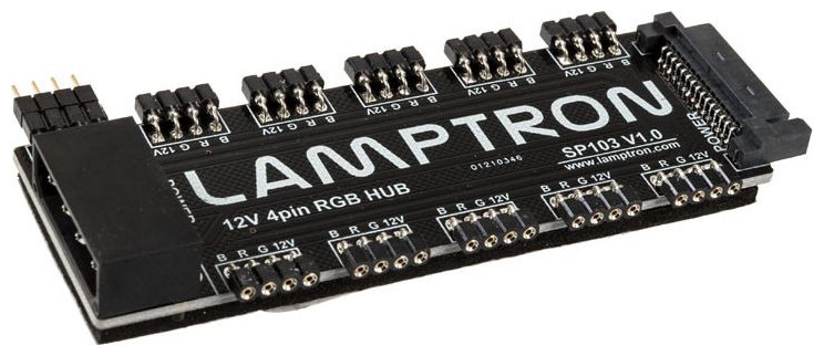 Οι ανεμιστήρες, οι ταινίες, οι αντλίες AiO και πολλά άλλα διαθέτουν πλέον φωτισμό RGB LED, ο οποίος μπορεί να μεταμορφώσει το εσωτερικό των κομψών θηκών σε ένα πραγματικό σόου φωτός. Τι να κάνετε όμως αν δεν υπάρχουν αρκετές υποδοχές στη μητρική πλακέτα; Η Lamptron έχει την απάντηση: τον διανομέα S P103 με δέκα (!) Υποδοχές (12 VGRB) για συνολικά 600 LED RGB. Χρησιμοποιώντας το παρεχόμενο καλώδιο, ο διανομέας συνδέεται με τη μητρική πλακέτα. Αυτός είναι τότε έλεγχος ελαφρών πλημμυρών. Η απαιτούμενη ισχύς παρέχεται από σύνδεση SATA και Molex. Τεχνικές λεπτομέρειες: