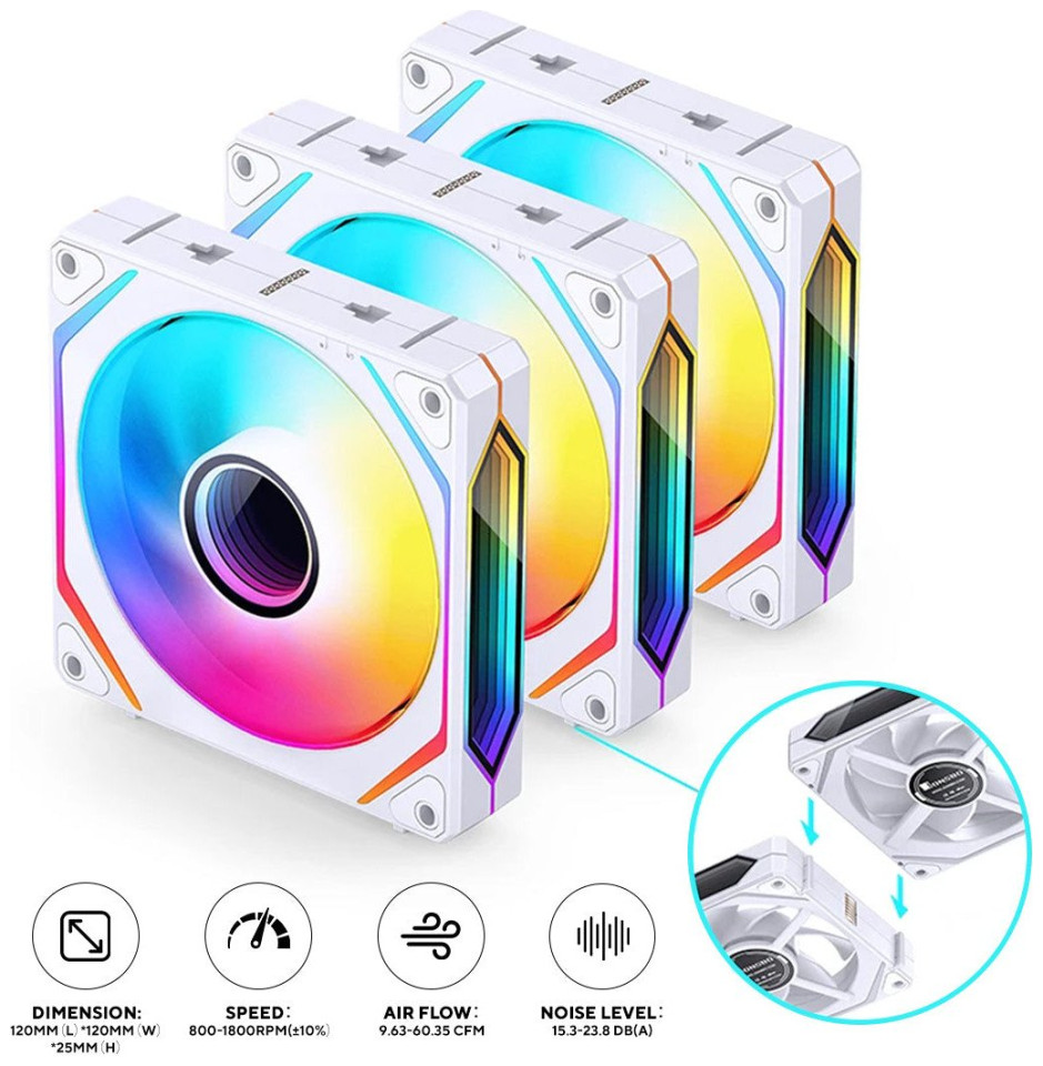 Jonsbo ZL-120W PWM ARGB ανεμιστήρας 3 τεμαχίων, κανονικός προσανατολισμός - 120mm, λευκός