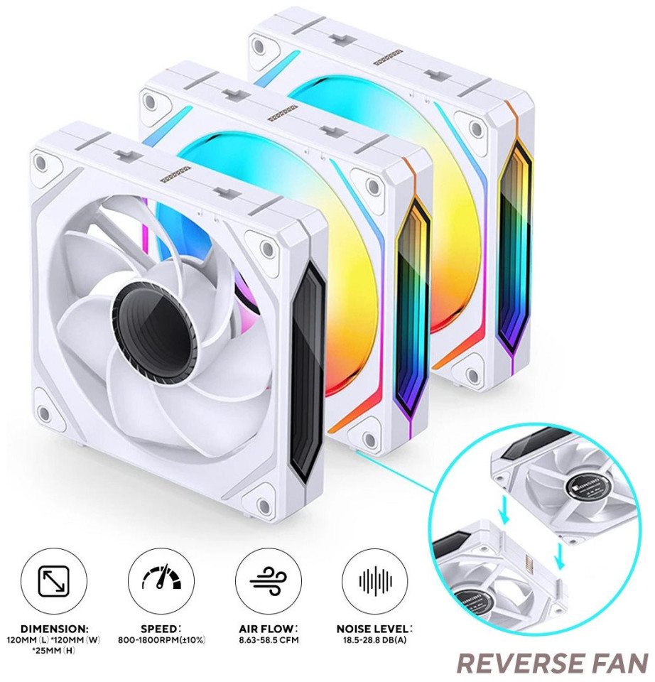 Jonsbo ZL-120WR PWM ARGB ανεμιστήρας 3 τεμαχίων, αντίστροφη κατεύθυνση - 120mm, λευκό