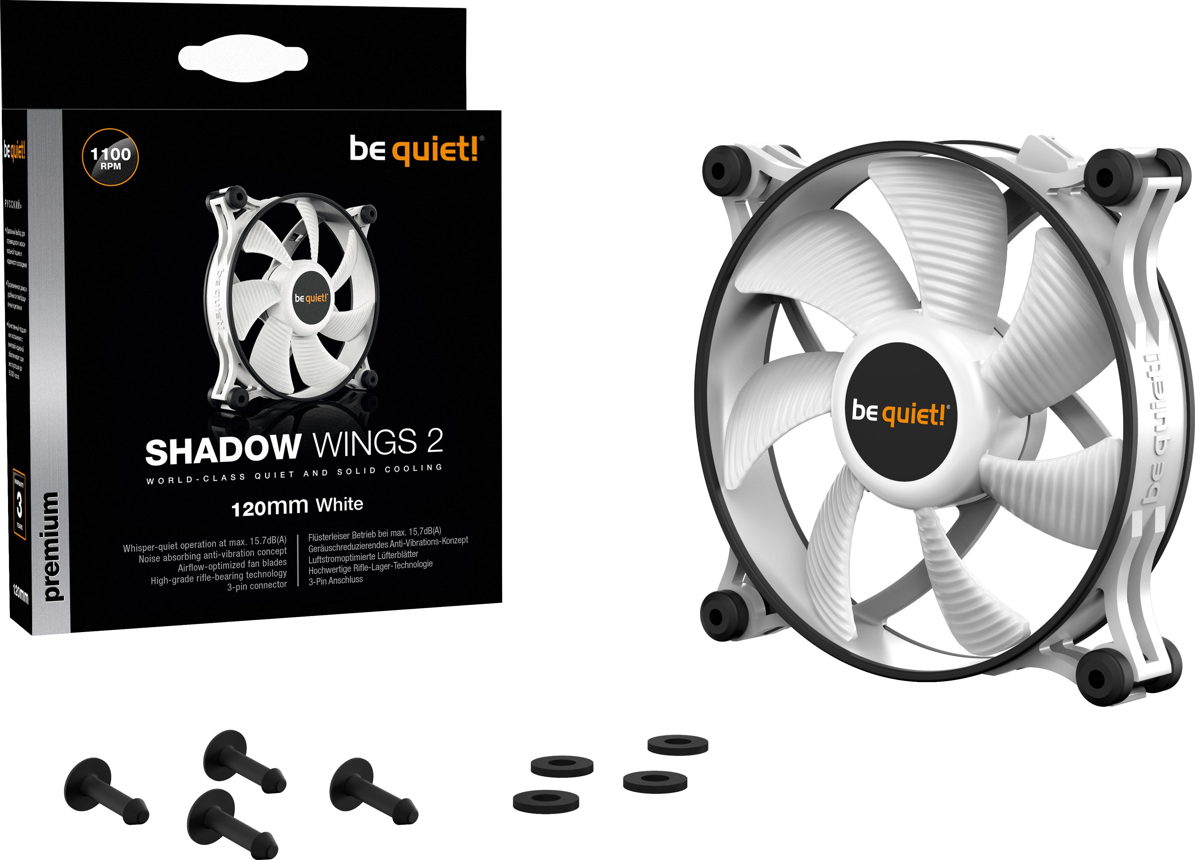 Οι λεπίδες στο Shadow Wings 2 120mm White έχουν βελτιστοποιηθεί για να παρέχουν μέγιστη ροή αέρα, εξασφαλίζοντας αθόρυβη λειτουργία ενώ παρέχουν σταθερή ψύξη. Ακόμη και με μέγιστη ταχύτητα περιστροφής 1100 rpm, λειτουργούν στα 15,9 dB(A). Η τέλεια επιλογή για όλους όσους εκτιμούν τη μέγιστη σιωπή στη θήκη του υπολογιστή τους.