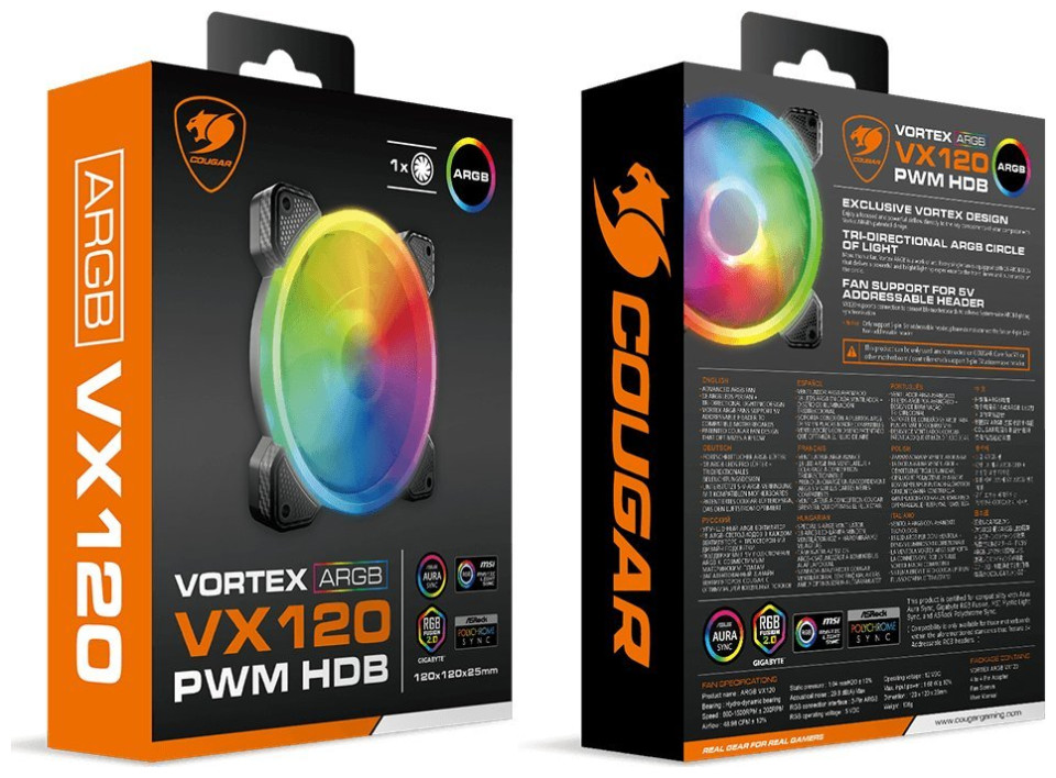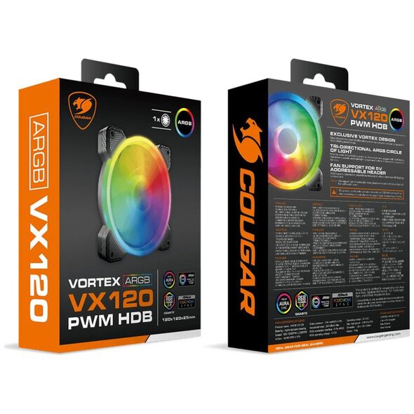 Με ενσωματωμένες θύρες 5V-ARGB και 24 σφαιρίδια φωτός ARGB, ο ανεμιστήρας ψύξης COUGAR VORTEX VX120 παρέχει ποικίλα και πολύχρωμα εφέ φωτισμού από οπουδήποτε, μέσω του φωτεινού δακτυλίου και της λεπίδας του ανεμιστήρα ταυτόχρονα. Αυτό επιτρέπει στους παίκτες να απολαμβάνουν εξαιρετικά εφέ φωτισμού σε οποιαδήποτε γωνία ανεμιστήρα.