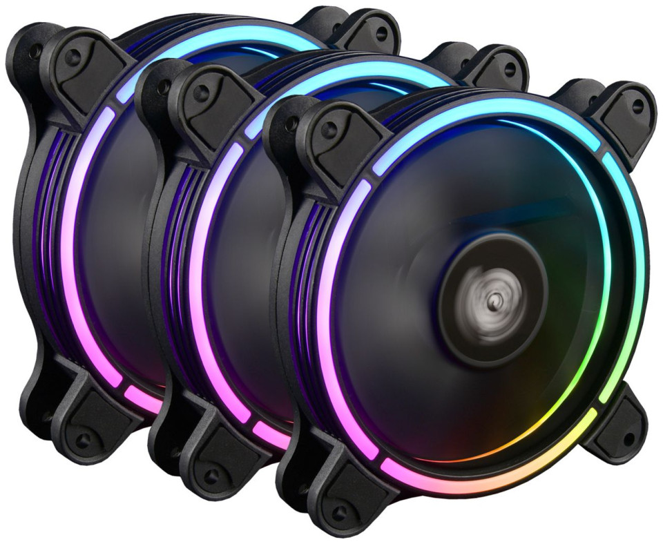 T.B.RGB AD. wentylatory obsługują adresowalną technologię RGB, zapewniającą wyjątkowe doznania oświetlenia RGB z 16,8 milionami kolorów. Cztery pierścienie w kształcie aureoli wyposażone w technologię ENERMAX LED Lighting są płynnie wkomponowane w oprawę i zapewniają jasne i równomierne oświetlenie bez widocznych punktów LED.