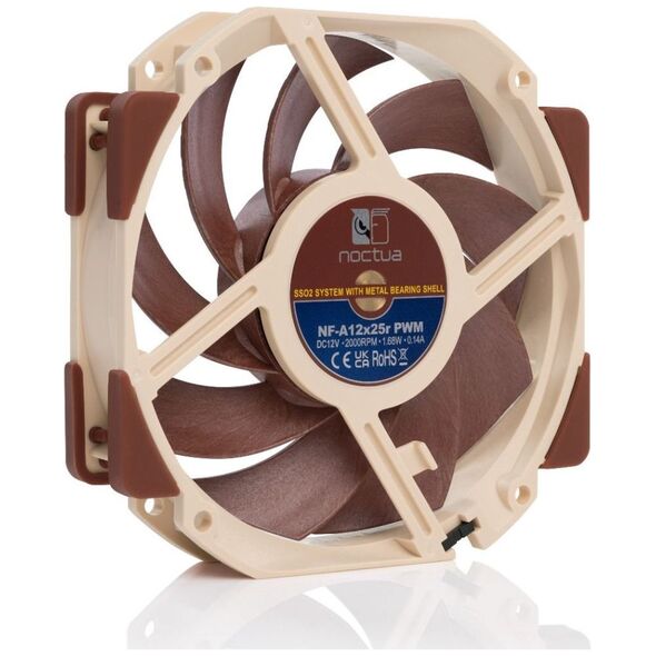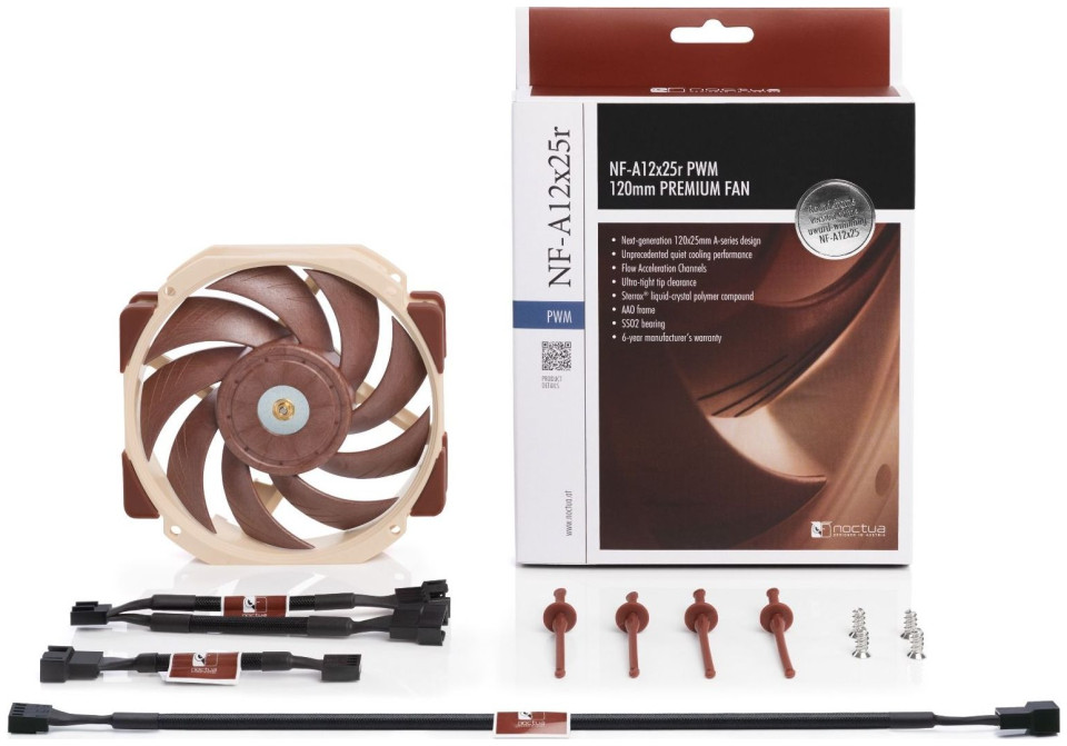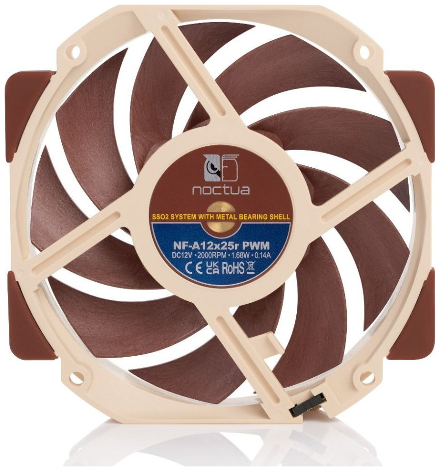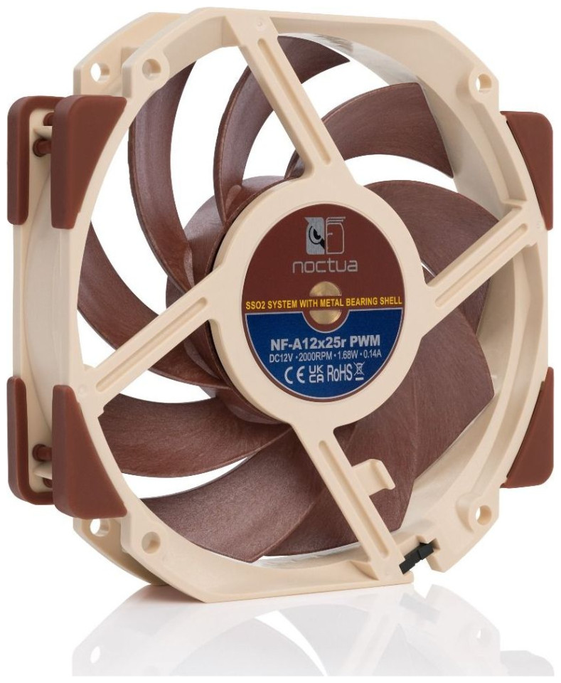 Το NF-A12x25r είναι μια στρογγυλή έκδοση του βραβευμένου κορυφαίου ανεμιστήρα 120 mm NF-A12x25 της Noctua. Το στρογγυλό σχήμα το καθιστά ιδανικό για χρήση σε ψύκτες CPU διπλού πύργου χαμηλού ύψους όπως το NH-D12L, καθώς και σε άλλες εφαρμογές περιορισμένου χώρου που δεν μπορούν να φιλοξενήσουν ανεμιστήρες τετράγωνου πλαισίου 120 mm. Όπως το τετράγωνο NF-A12x25, το στρογγυλό NF-A12x25r χρησιμοποιεί ένα διάκενο ρεκόρ μόλις 0,5 mm, που έγινε εφικτό με τη χρήση του καινοτόμου πολυμερούς υγρών κρυστάλλων Sterrox® και πλήμνη και άξονα κινητήρα ενισχυμένου με μέταλλο για υψηλότερη ακρίβεια.